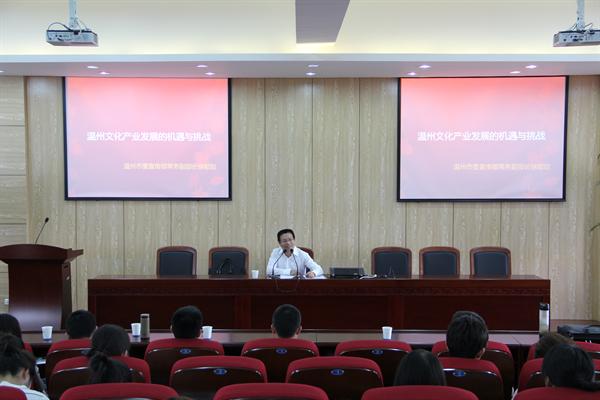 座谈会后,徐顺聪副部长还为全讯白菜网官网师生开设了题为“温州文化产业发展的机遇与挑战”专题讲座。院长蔡贻象教授以及广告学、中文专业的部分教师和本科生参加了此次讲座。