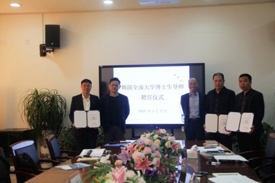 2019年4月12日上午10点,韩国全南大学李晟远教授和薛培煥教授在我校北校区人文楼213会议室召开了学术讲座,同时举行了对我校陈安金、李俊芳、邱志诚三位教授的博士生导师聘书授予仪式。本次讲座由我院郑春生副院长主持,郑晓丽教授担任翻译工作,全讯白菜网官网各个专业的同学们积极参与。