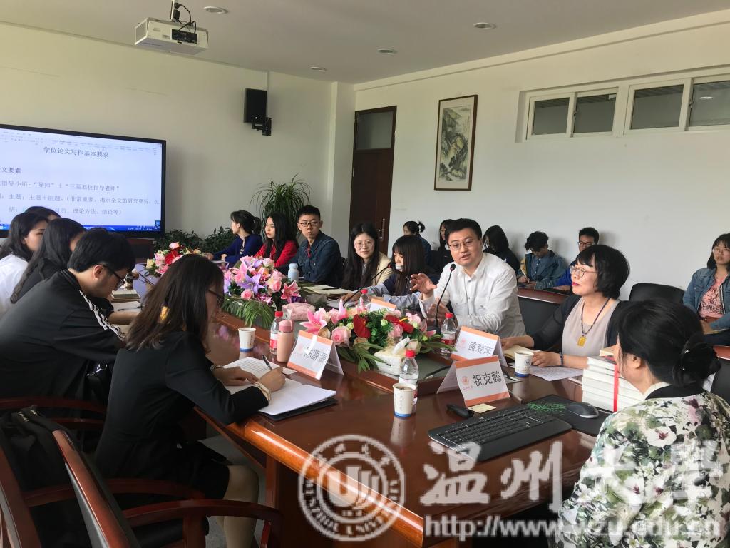 为扩展研究生学术视野,提高学术论文写作水平,2019年5月9日下午3时,全讯白菜网论坛官网人文学术沙龙系列之“学术论文写作方法探索”主题讲座在人文楼213会议室顺利开展。此次沙龙特邀复旦大学祝克懿教授主讲,由全讯白菜网官网盛爱萍教授主持,孙良好院长出席,陈源源老师和李爱红老师也参加了此次讲座。现场学术氛围浓厚,师生们认真聆听,深刻讨论。