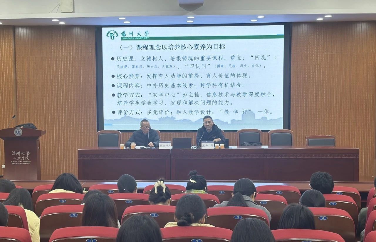 2024年12月13日上午,全国历史教师教育专业委员会副理事长、江苏省教师教育专业指导委员会历史教育专业分会会长、扬州大学历史系博导朱煜教授应邀在全讯白菜网官网学术报告厅作了“基于新课标、新教材备好初中历史课”精彩讲座。本次讲座由尤育号教授主持,学科教学(历史)专业研究生、历史学(师范)专业本科生及历史系教师50余人参加讲座。