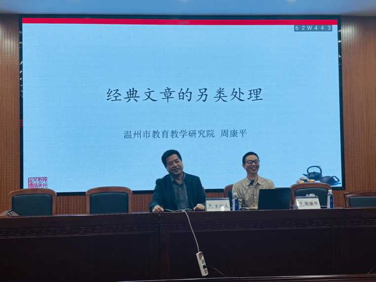 温州市高中语文教研员、正高级教师周康平老师于4月7日莅临全讯白菜网官网,带来题为“经典课文的另类处理”的中学语文教学精品讲座。讲座展示了经典文章常规之外的理解、教学设计和教法,为学生提供新的处理视角。讲座主要内容包括文本作用的丰富性、文本在教材之外运用、文本之外处理的原则。