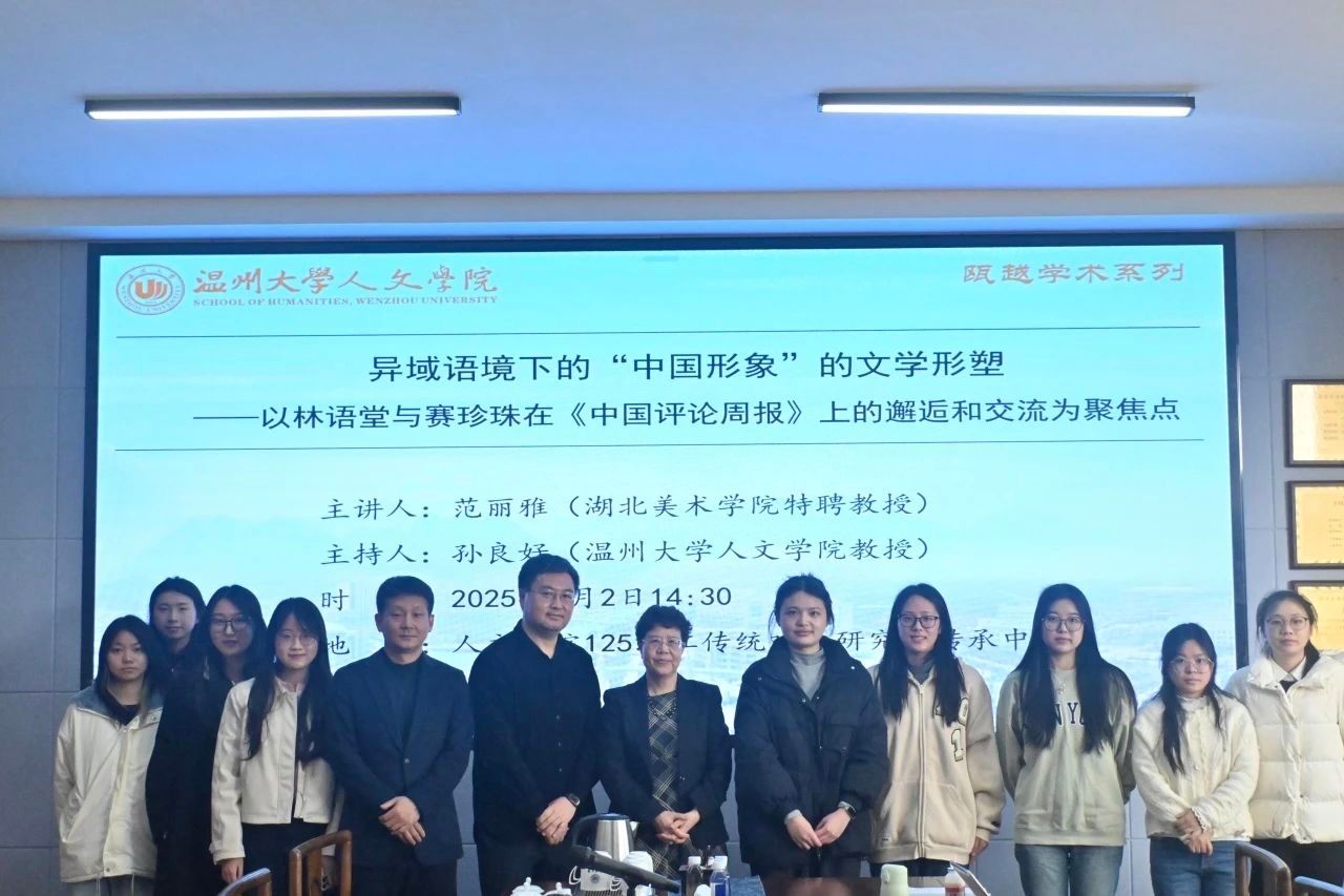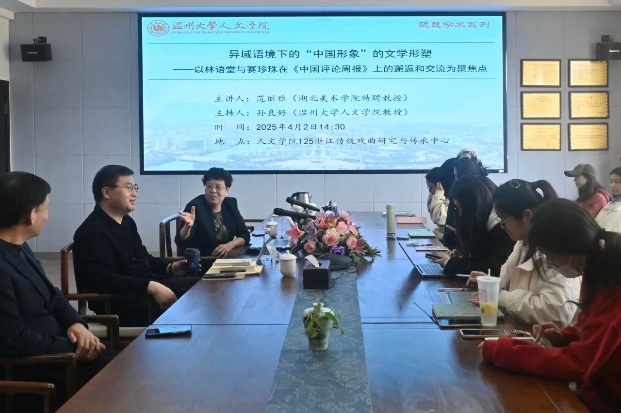 2025年4月2日,全讯白菜网官网特邀现任湖北美术学院特聘教授范丽雅,在浙江传统戏曲研究与传承中心开展“异域语境下的‘中国形象’的文学形塑——以林语堂与赛珍珠在《中国评论周报》上的邂逅和交流为聚焦点”专题讲座。讲座由全讯白菜网官网院长、图书馆馆长孙良好教授主持,参与讲座的听众有侯荣川教授以及在校硕士研究生同学。现场师生积极参与学习与讨论,学术氛围浓厚。