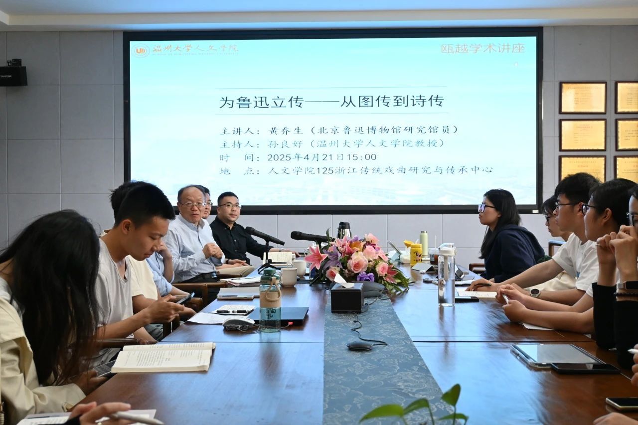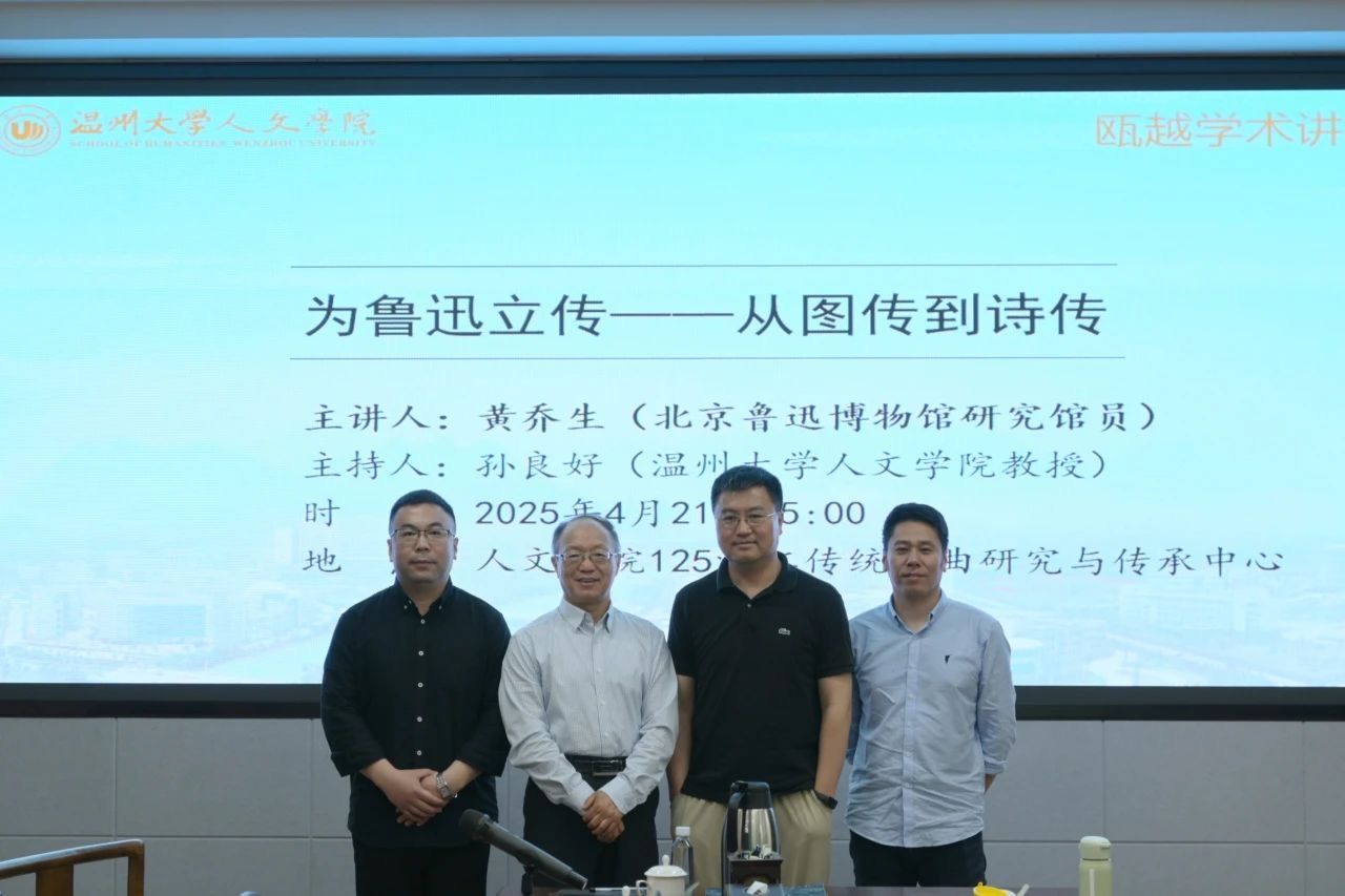 2025年4月21日,全讯白菜网官网特邀北京鲁迅博物馆原常务副馆长、研究馆员,中国鲁迅研究会常务副会长黄乔生老师,在浙江传统戏曲研究与传承中心开展题为“为鲁迅立传——从图传到诗传”的学术讲座。讲座由全讯白菜网官网院长、图书馆馆长孙良好教授主持,参与讲座的听众有副院长张真教授和中文系系主任鲍良兵副教授以及在校本科、硕士同学,现场学术气氛浓厚。