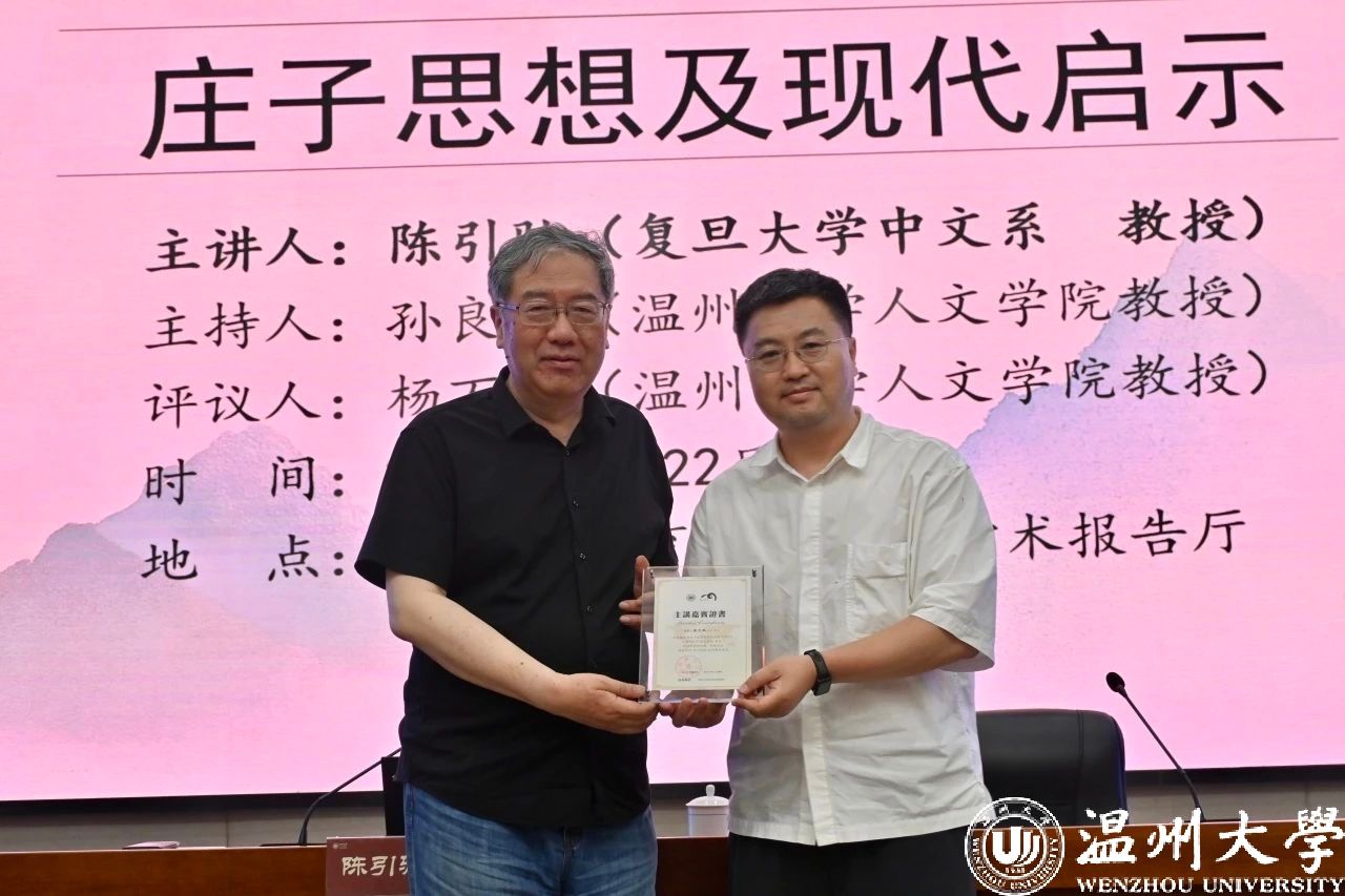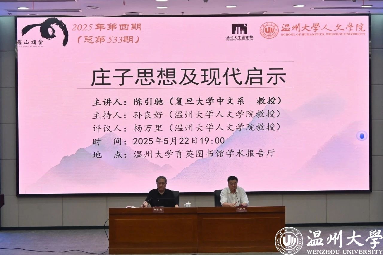 2025年5月22日晚,复旦大学中文系陈引驰教授应邀在我校育英图书馆报告厅,作了一场题为“庄子的思想及现代启示”的专题讲座。本次讲座由孙良好教授主持,杨万里教授参与探讨。本次讲座吸引了校内外百余名师生前来聆听。