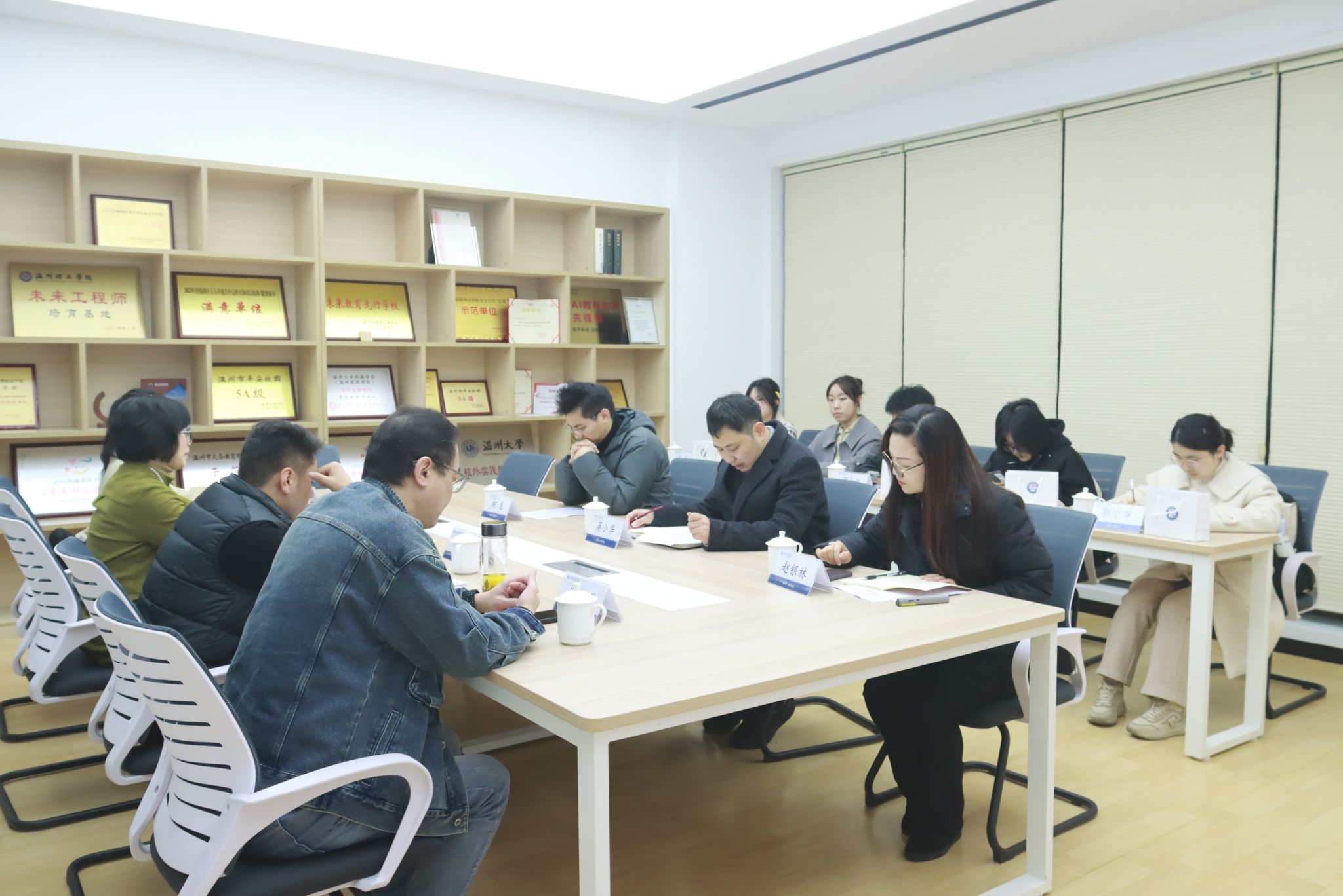 2025年3月3日,400全讯白菜网2022级汉语言文学(师范)专业实习见面会在温州榕园学校举行。此次见面会旨在明确实习目标与要求,促进实习生与指导老师的交流,为即将展开的实习工作奠定坚实基础。400全讯白菜网中文系主任鲍良兵老师,实习指导师洪之渊和陈小碧,榕园学校蒋小华副校长,导师代表柯龙老师以及11名实习生参加会议。会议由榕园学校外联部赵银林老师主持。