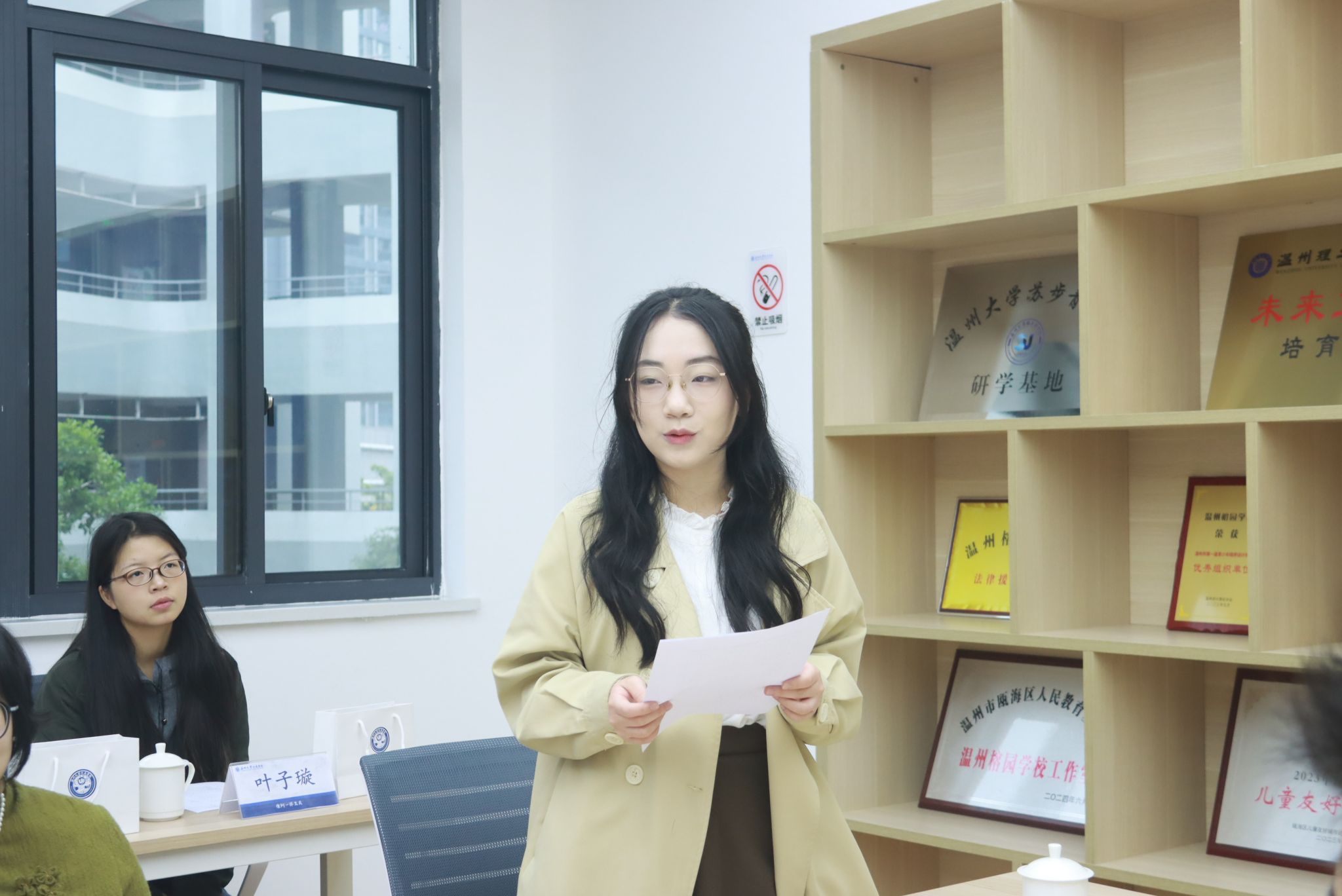 紧接着,是实习生代表郑靓发言,她满怀感激之情,代表全体实习生向400全讯白菜网和温州榕园学校表达了深深的谢意。郑靓同学表示,将倍加珍惜这次宝贵的实习机会,以虚心求教的学生和用心陪伴的教师的双重身份,不断前行。她承诺,将以“求真务实,敢为人先”的温大精神为指导,全力以赴地完成本次实习任务,尽快实现从实习生到教师的角色转变。