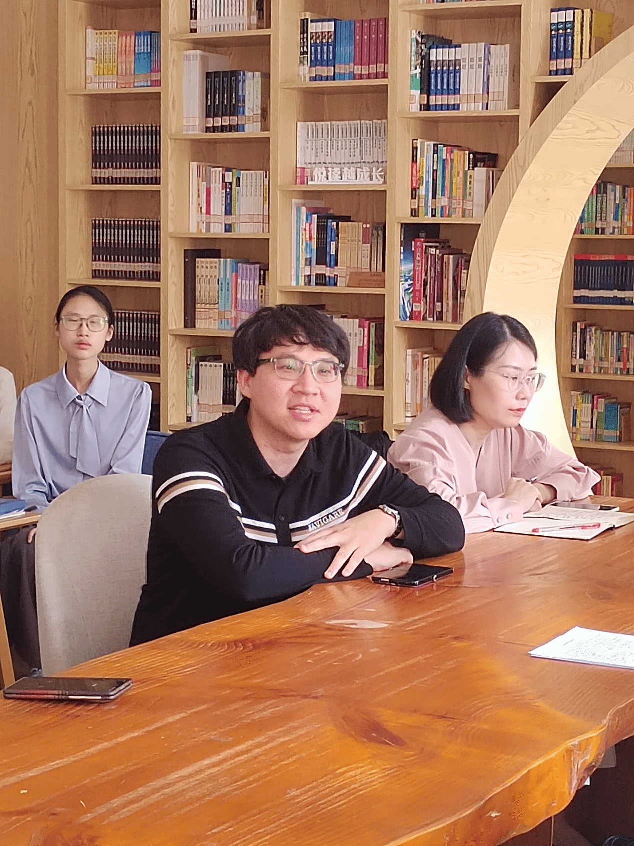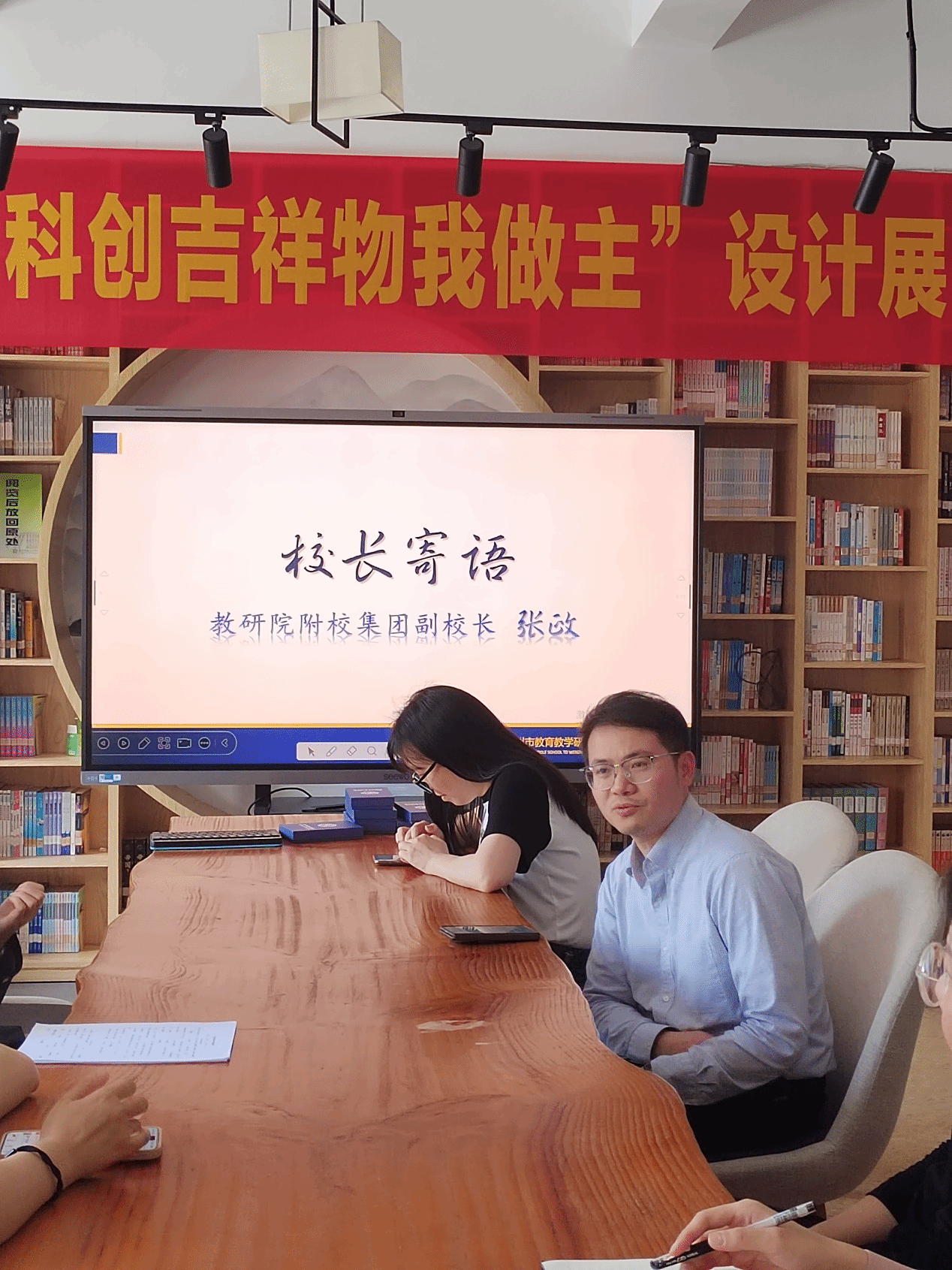 温十二中副校长张政致辞。他认为,此次汇报课展现了实习生扎实的专业基础,也是对实习成果的检验与总结,同时充分肯定了实习生在实习期间对学校各项活动的支持与贡献。他还强调,学校高度重视此次实习工作,为实习生们配备了优秀的师资,帮助同学们习有所成。随后,张校长还为大家送上了精美的纪念品礼盒,含有本校特色校徽、书签、钥匙扣等。
