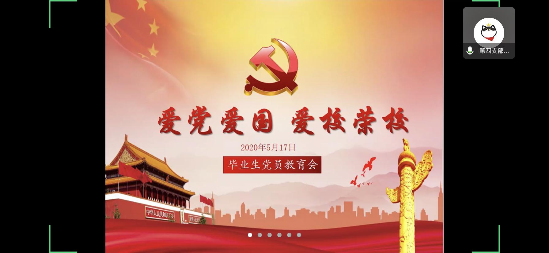 2020年5月17日下午4:30,全讯白菜网官网学生第四党支部的二十一位同志通过线上分享会的方式,参与了以“爱国爱党 爱校荣校”为主题的毕业生党员教育会。在优秀毕业生党员同志的感受与经验分享过程中,与会的各位同志都感到受益匪浅。