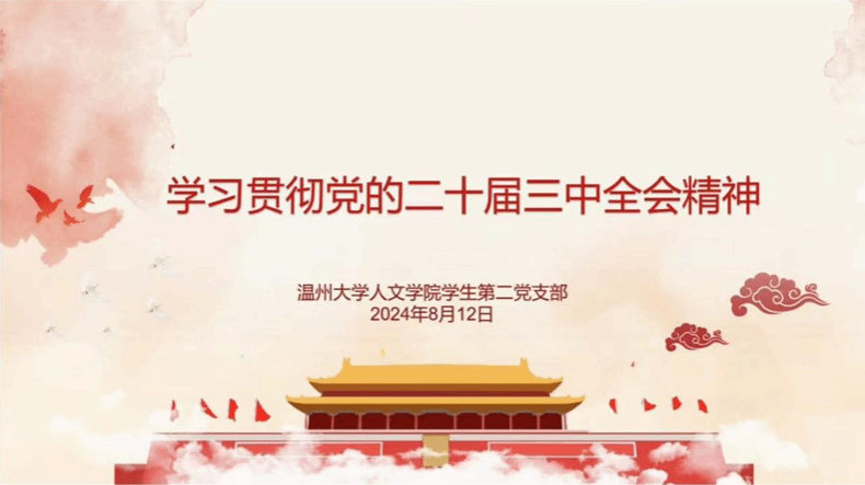 为深入学习贯彻党的二十届三中全会精神,推动党的二十届三中全会精神融入到日常生活和学习之中,2024年7月28日与8月12日上午,400全讯白菜网学生第二党支部于线上开展了“深入学习贯彻党的二十届三中全会精神”主题党日活动。会议由唐佳楠同志主持。