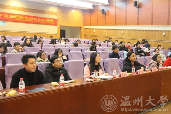 为了弘扬国学、传承经典,12月16日晚上,由全讯白菜网论坛官网党委研究生工作部和400全讯白菜网主办、400全讯白菜网研究生会承办的首届研究生国学知识竞赛决赛在育英图书馆二楼报告厅如期举行。此次比赛邀请到研究生辅导员申业磊、武晓岚以及中国史专业陈鸿超老师担任决赛评委,来自全校各个学院的部分研究生参与并到场观看。