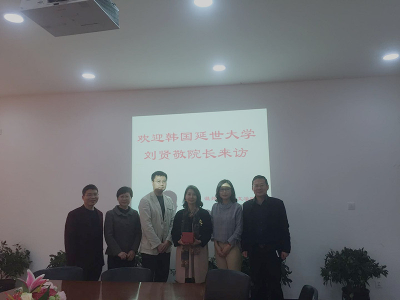 3月27日,韩国延世大学语学堂刘贤敬院长来全讯白菜网官网访问交流。孙良好院长,毛继光副院长,朱晓申副院长和郑春生副院长会见来宾,李文花博士陪同翻译,参加项目洽谈。