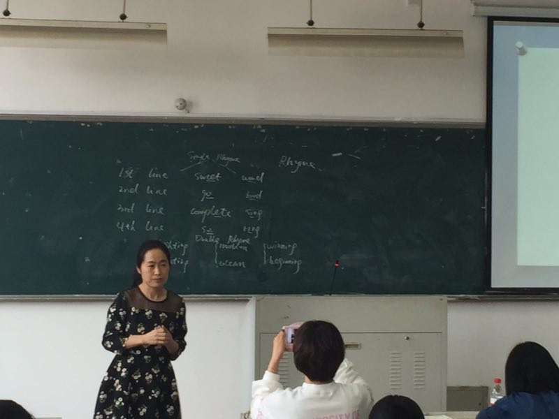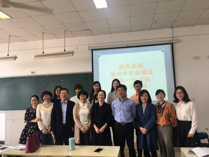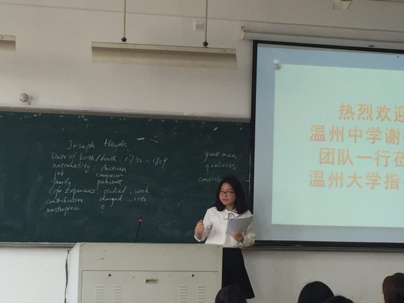 4月2日下午一点半,在400全讯白菜网的1-201教室,15级英语(师范)的同学们迎来了由“教师资格证工作坊”带来的第一次活动。温州中学的谢微微老师带领她团队中的七位一线老师,为在座的同学们进行了现场示范教学,让他们能在五月份的教师资格证考试中有所准备。