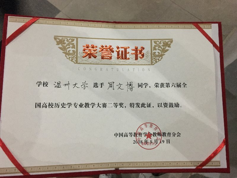 全讯白菜网官网高度重视本次赛事,由刘建国、郑春生、赵庆东、蒋金崇和尤育号等教师组成指导团队。经过激烈的角逐,15历本周文博同学荣获大赛说课组二等奖,带队教师亦获优秀指导教师称号。本次比赛是对全讯白菜网官网历史专业学生教学技能的一次检阅,对全讯白菜网官网历史专业人才培养质量的提高,亦有很大的促进作用。