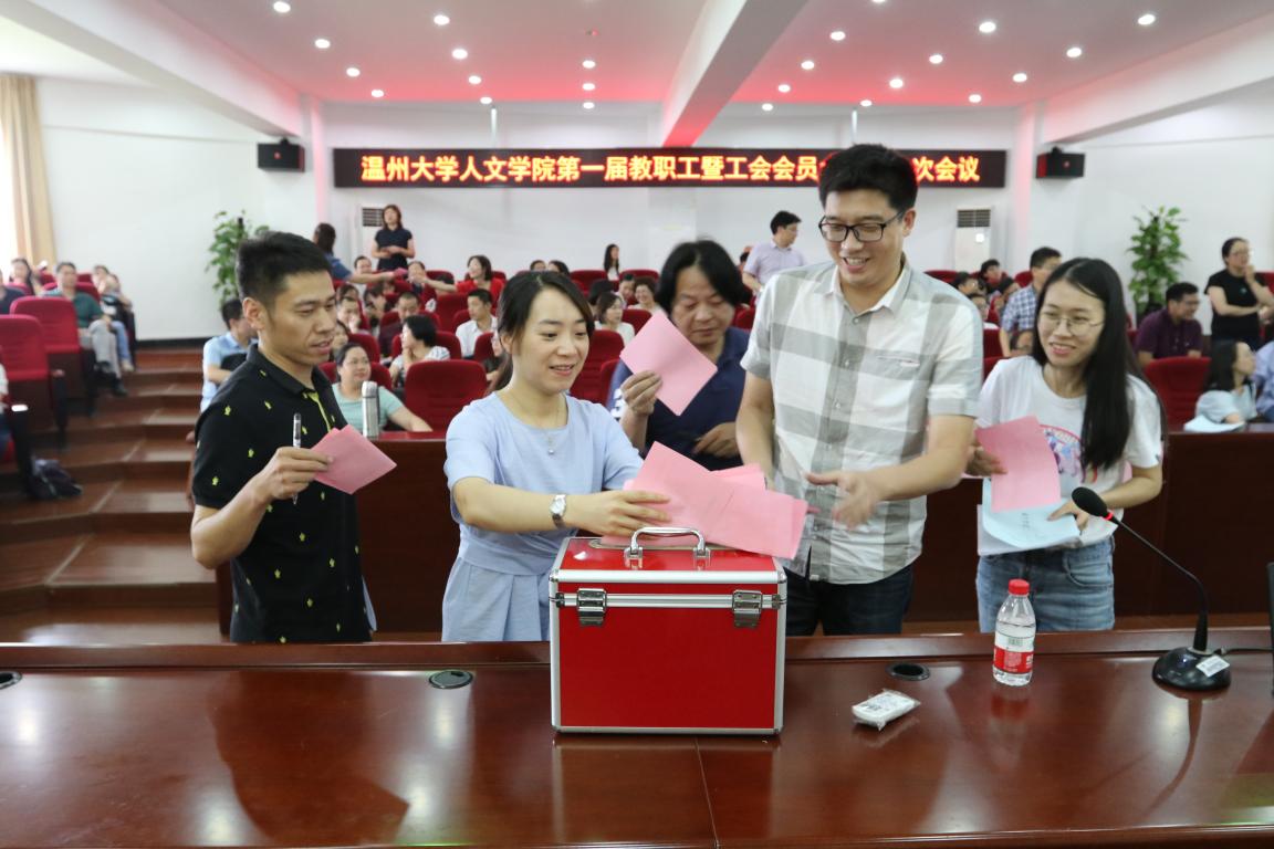 2018年6月13日下午,全讯白菜网官网第一届教职工暨工会会员大会第一次会议在人文楼203报告厅隆重召开,学院教职工代表共135人参加本次会议。校党委委员、纪委书记吴金法、工会副主席张希均莅临大会指导。
