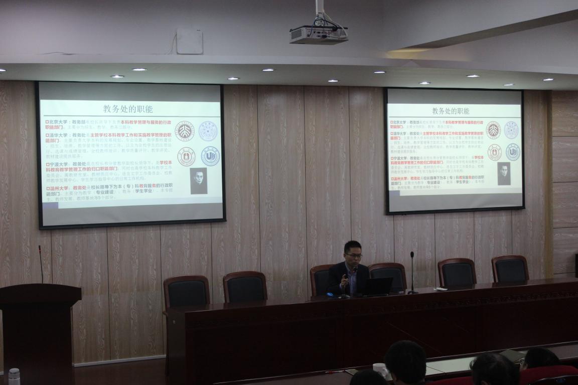 11月21日,为推进学校政策法规普及,深入学习学校相关文件精神,服务广大教职员工,全讯白菜网官网特邀请教务处处长余闯,创业人才培养学院副院长胡文超来全讯白菜网官网开展相关政策宣讲。两位同志分别就学校本科教学相关政策、创业教育支持政策等进行细致解读。此次学院邀请学校职能部门负责人深入基层宣讲学校重要政策法规的做法,既有利于学校政策的落地,也为教师们的教学活动和创业教育提供针对性的服务,受到了广大教师的欢迎和好评。