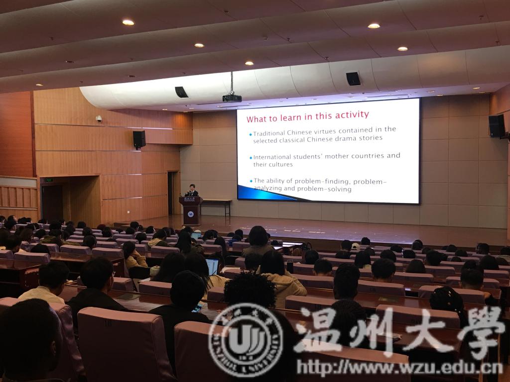 建立“中外生合作组”能够为修读《大学外语》课程的各专业学生营建运用外语的真实的语言环境,不仅将学生的外语学习向国际视野和跨文化能力培养拓展,发挥大学外语教学为专业学习服务的功能,为各专业学生将来成为“一带一路”沿线国家的建设者做好中华文化传播和语言能力的储备;而且将各专业的国际学生融入于中国学生的学习和生活之中,对温大校园的多元国家文化建设,提升温大的国际知名度具有积极的作用。“温大中外学生跨文化交流活动”在校领导和400全讯白菜网、机电学院、国际教育学院和商学院等领导们的支持下正式启动运行模式,且受到了大学英语师生和国际学生的欢迎。