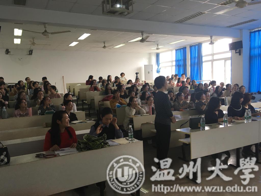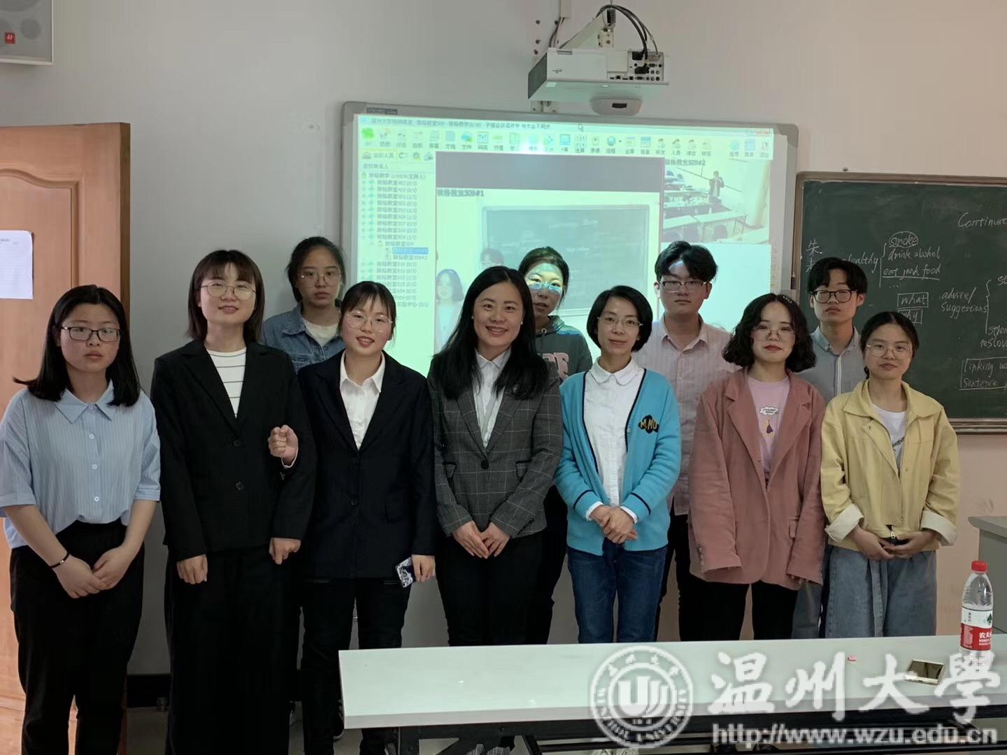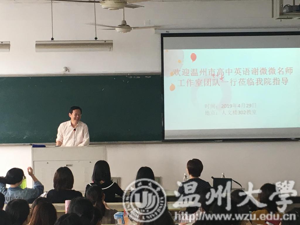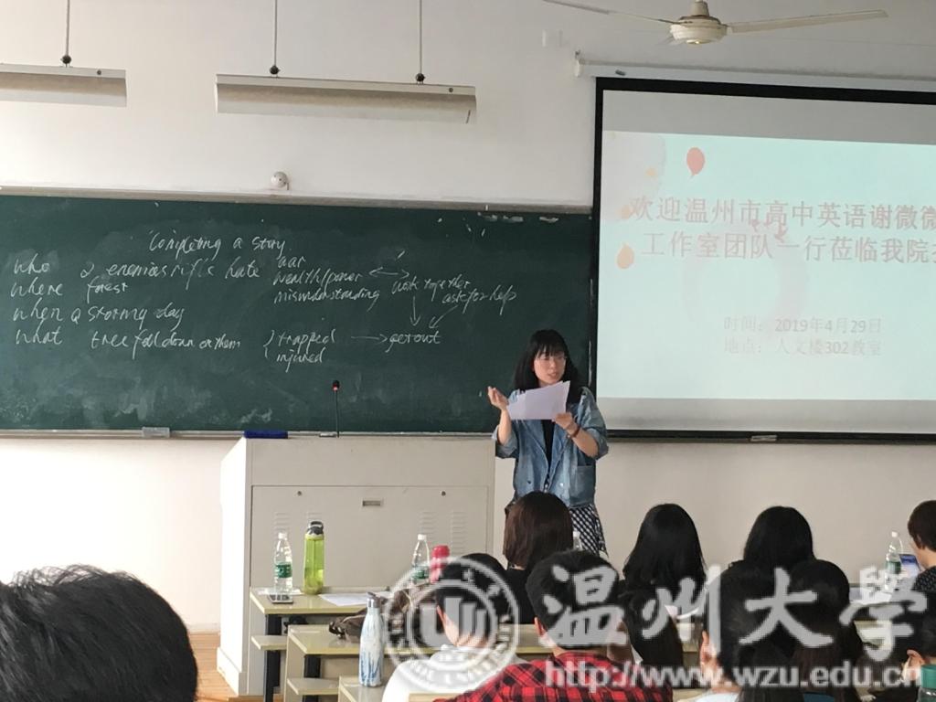 2019年4月29日到5月8日,以温州中学教授级高级教师谢微微为负责人,包括温州中学蔡丽丽老师、蔡夏冰老师、蔡珍瑞老师、丁丽芸老师、李晶老师、麻晨晨老师、钱盈老师、许少秋老师、叶彬彬老师、张倩老师、赵天红老师、朱婷婷老师,以及温州第十四高级中学谢津津老师等在内的谢微微名师工作室为全讯白菜网官网16级英语(师范)专业学生开设“教师资格证工作坊”特色实践课程。谢微微老师是全讯白菜网官网英语(师范)专业优秀校友,毛继光副院长代表外国语学院,既表达了对老师们表示了热烈欢迎,也提醒同学们要抓住这次难得的学习契机。该课程由李宋昊老师和薛丽芳老师负责。