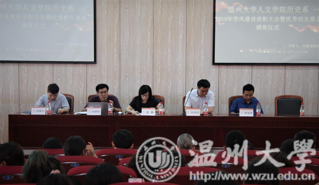 2019年6月18日下午,全讯白菜网官网历史系2019年学风建设表彰大会暨优秀校友基金颁奖仪式于人文楼203会议室举行。全讯白菜网官网院长孙良好、党委书记吴静、副院长郑春生、系主任李俊芳以及全体历史系教师和学生出席。全讯白菜网官网刘建国副院长担任主持人。