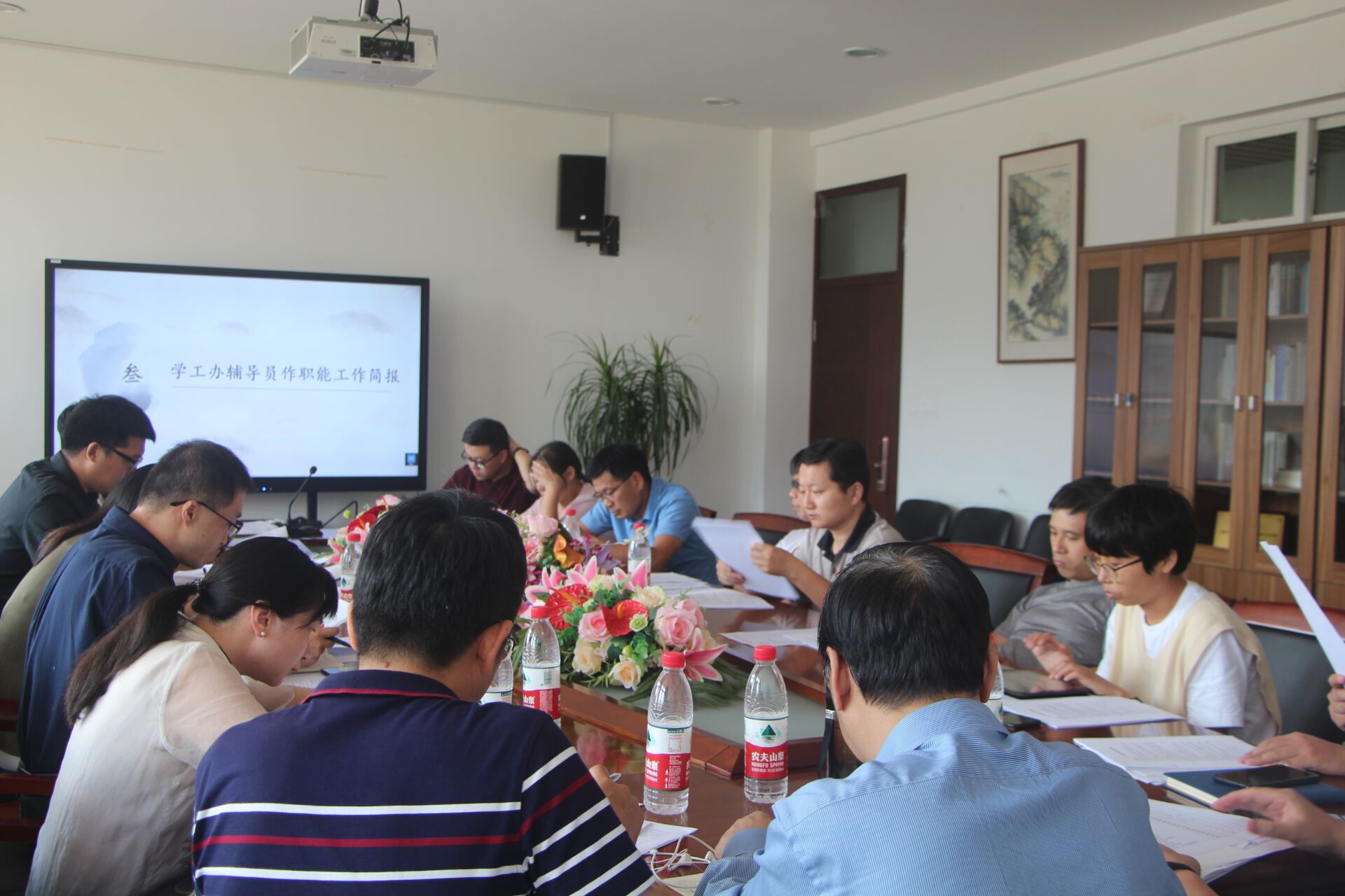 2019年9月25日下午,全讯白菜网官网在人文楼213会议室召开了新学期班主任工作会议。参加本次会议的有院党委书记吴静、院党委副书记魏一,学工办主任刘纪峰、辅导员胡震鹏、申业磊、李丹萍以及各班班主任。会议由院党委副书记魏一主持。