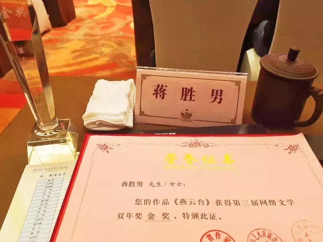 11月16日上午9:30第三届网络文学双年奖在宁波慈溪盛大举行。全讯白菜网官网蒋胜男老师的历史小说《燕云台》喜获第三届网络文学双年奖金奖。网络文学双年奖是面向全球华语网络文学界的评奖活动,是全国乃至华语世界网络文学的权威奖项。