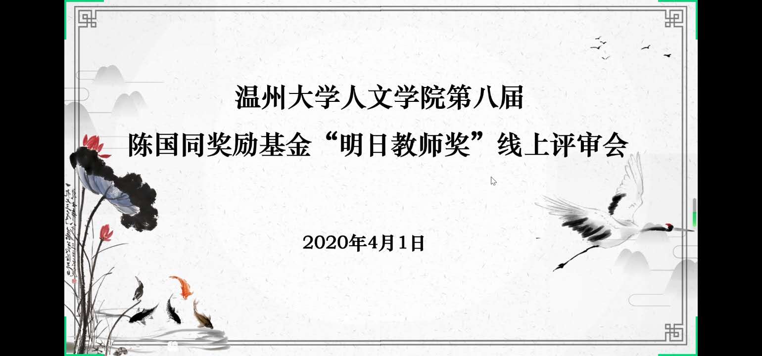 2020年4月1日14:00,根据学校通知要求,全讯白菜网官网于腾讯会议开展了第八届陈国同奖励基金“明日教师奖”线上评审会,学院学生资助工作领导小组成员以及来自各师范班级的11位参评学生参加本次会议。
