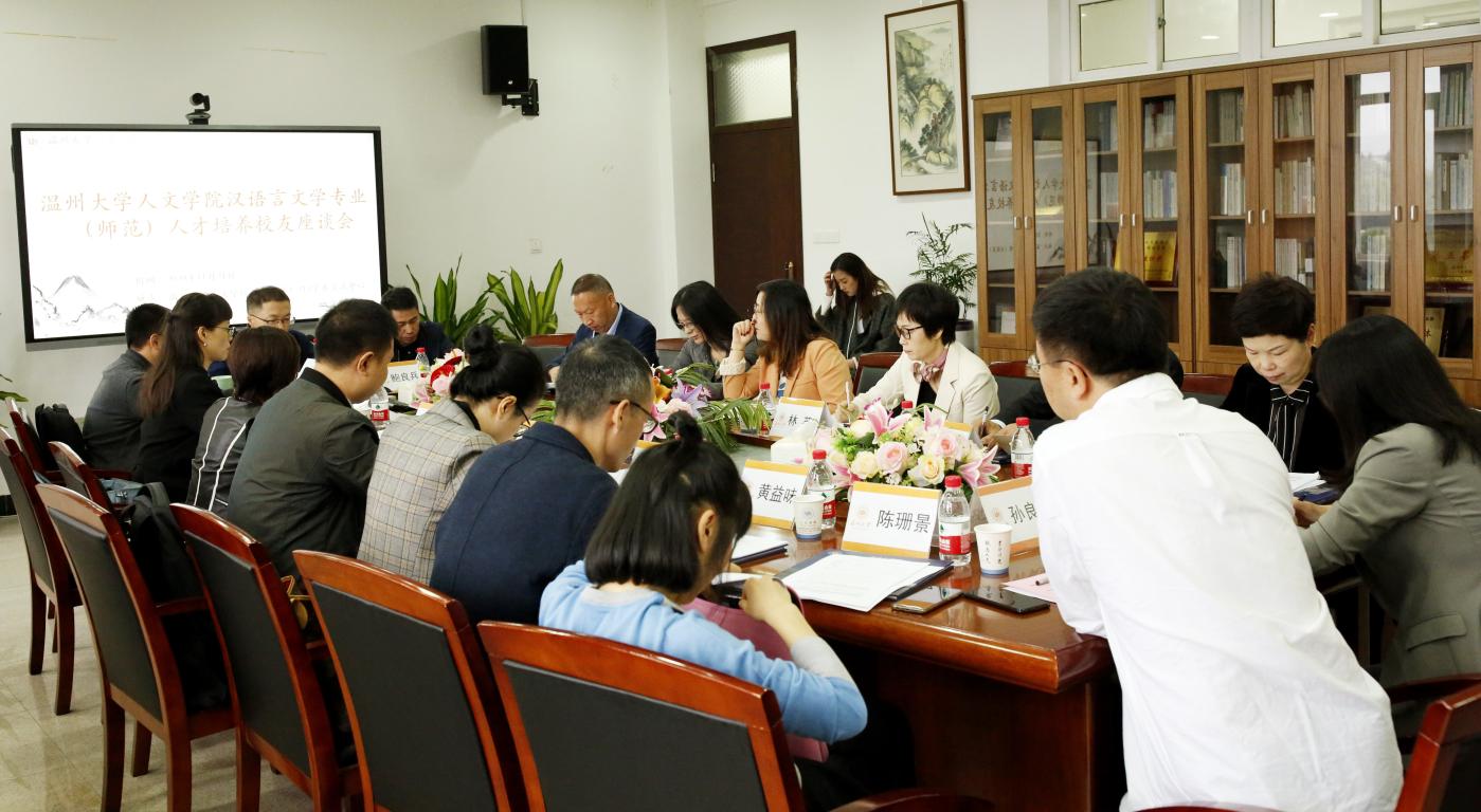 2020年11月21日,400全讯白菜网2020级汉语言文学专业(师范)培养方案修订暨国家级一流专业建设点汉语言文学专业人才培养校友座谈会在400全讯白菜网213学术交流中心召开,会议邀请到了温州市绣山中学校长林晓斌、温州实验中学副校长周莹、温州市第二外国语副校长张寰宇、温州中学教授级高级教师娄沂和省特级教师郑可菜等13位温州基础教育的名师名校长优秀校友代表。400全讯白菜网领导、学院中教法教研室教师参加了座谈会。