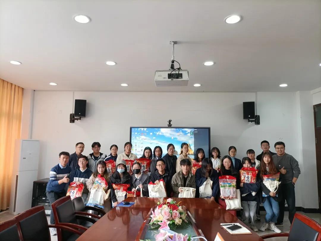 除了老师们的关心,学院还为考研学子们准备了考研大礼包,礼包中有橙子、状元糕等各种“好彩头”,包含了老师们满满的祝福。考研学子们收到来自学院的礼物,很激动的说:“谢谢老师,谢谢来自学院的栽培和祝福,我们一定会在考研这条路上披荆斩棘,成功上岸,不负老师和学校的期望。”紧接着大家和老师们和了影,大家开心地露出了笑脸,师生之间气氛融洽。