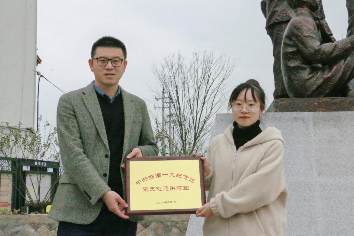 活动伊始,为更好的开展校地党建合作,瓯海区仙岩街道党工委书记金海敏为学生党史宣讲团授“中共浙南一大纪念馆党史志愿讲解团”牌,希望全讯白菜网官网党史宣讲团能够充分学习和发掘浙南一大党史,为来纪念馆参观的群众当好讲解员。据悉,“四史”青年说项目是全讯白菜网论坛官网学生党建特色品牌创建项目之一,该项目力主通过朋辈讲四史的新颖形式,激发校内外青年对“四史”的学习热情,此次授牌恰是项目推进中服务地方的重要一环。