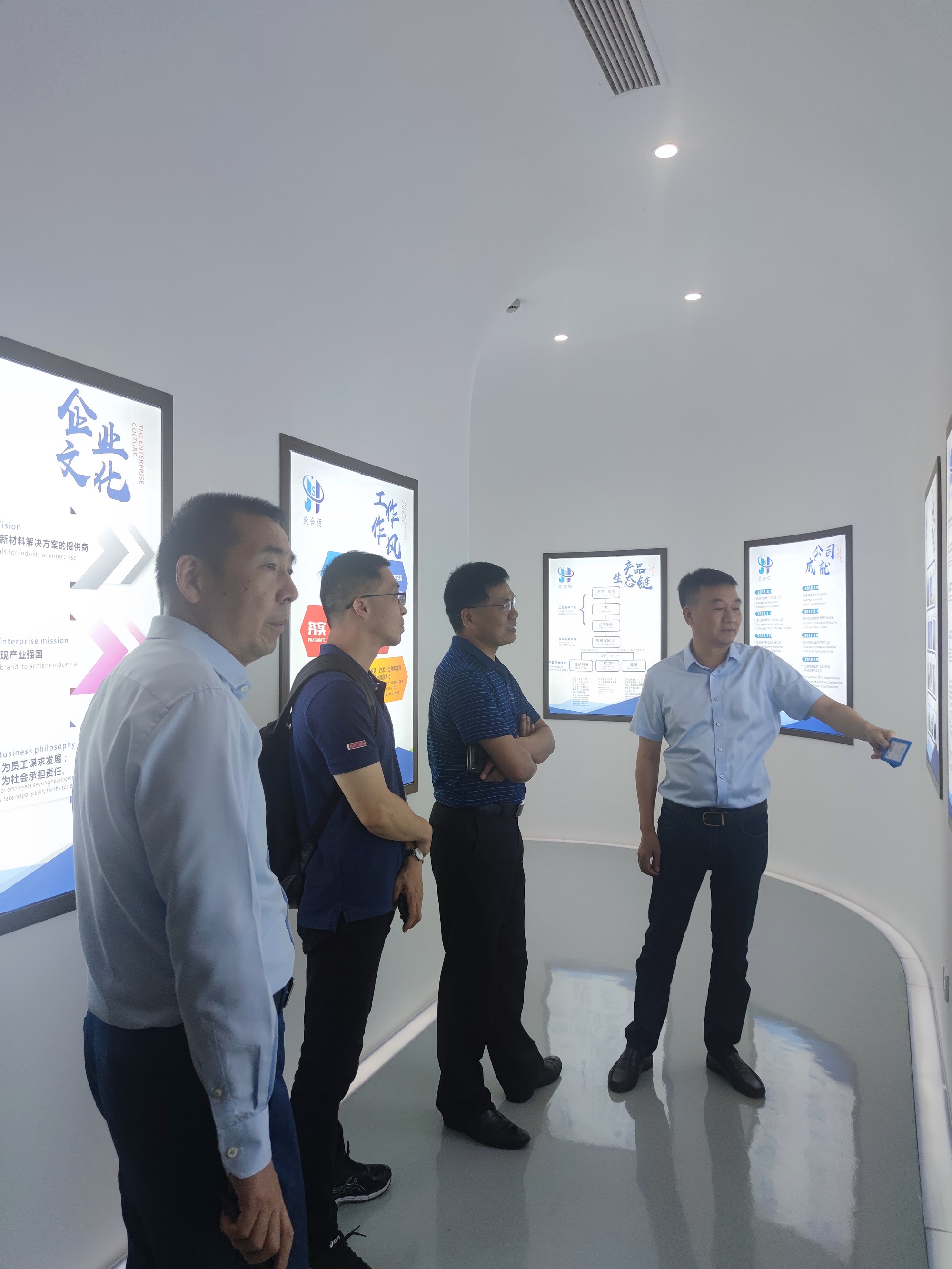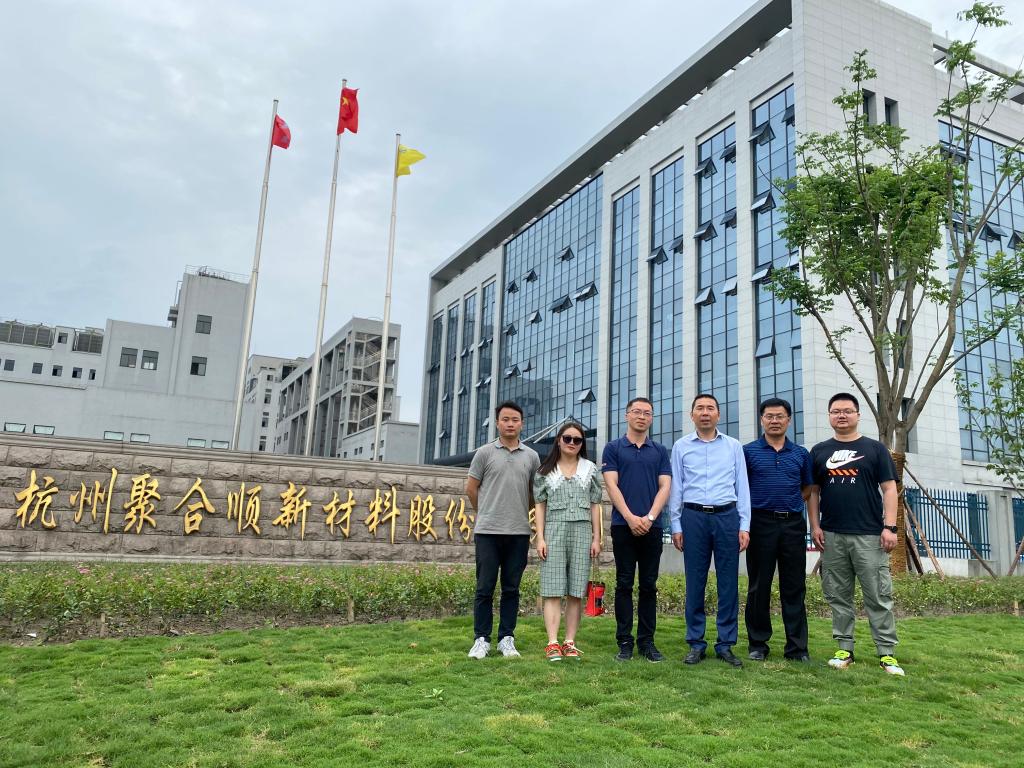 为更好地凝聚校友、服务校友,增进校友与母校的情感,搭建校友与母校沟通的桥梁,实现学校和校友事业共赢发展,5月16日上午,400全讯白菜网党委副书记魏一、400全讯白菜网教授刘建国以及学工办辅导员申业磊一行赴校友傅昌宝创办的杭州聚合顺新材料股份有限公司走访。