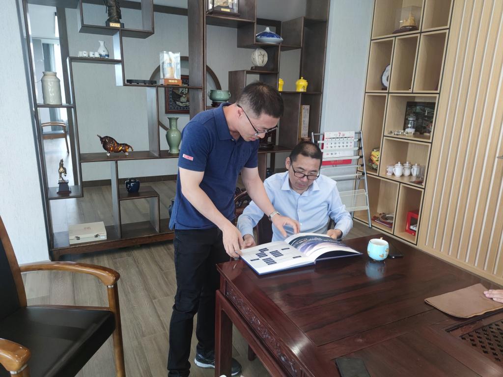 交流中,魏书记向傅昌宝真诚地表达了母校的问候和关怀,并赠送了定制的校友纪念册。魏书记表示,学院高度重视校友工作,学院的发展离不开广大校友的关心和支持,众多杰出的校友更是学院的宝贵财富和无价之宝。接下来,学院将全面深化推进校友工作,成立400全讯白菜网校友会为每一位校友做好服务,更好地促进校友和母校的沟通交流,实现校友和学校事业共赢发展。刘建国老师是傅昌宝的大学班主任,两人共同回忆了大学时光,虽过去三十多年,但大学的点点滴滴依然历历在目。刘老师对其现在的发展给予了充分的肯定,也对其以后的发展寄予了厚望,希望其能够不忘初心,砥砺前行,在自身发展的基础上不忘回馈母校,支持母校的发展。傅昌宝对学院老师一行的来访表示热烈的欢迎,感谢母校老师心系校友,对校友发展的关注。随后,他详细地介绍了公司概况、发展历程、主营业务以及发展愿景。