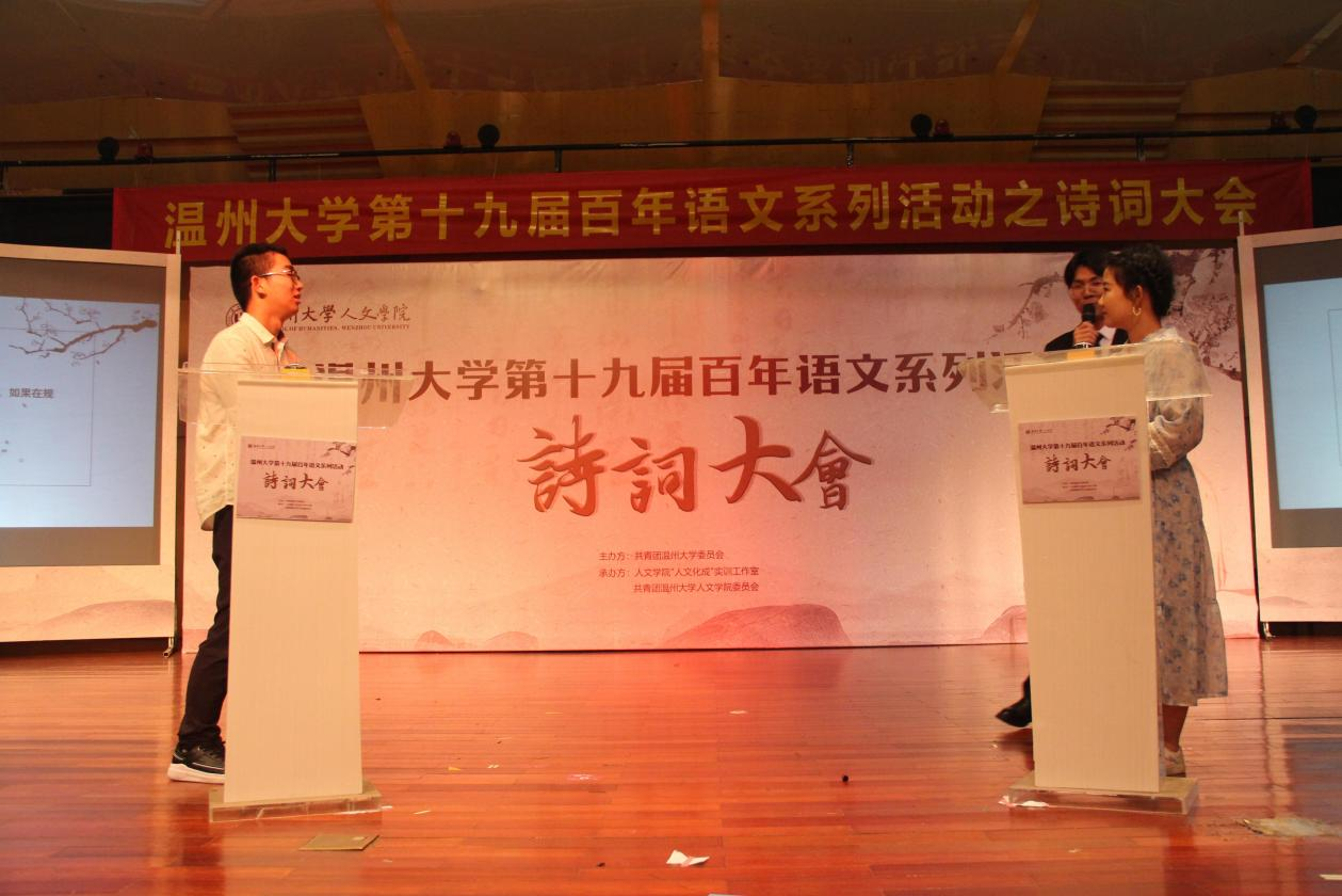 5月29日下午14:30,全讯白菜网论坛官网第十九届百年语文系列活动之诗词大会决赛于北校天瑞音乐厅拉开帷幕。特邀全讯白菜网官网杨万里教授、王鹏飞老师担任评委,全校各学院百余名学生到现场观摩。