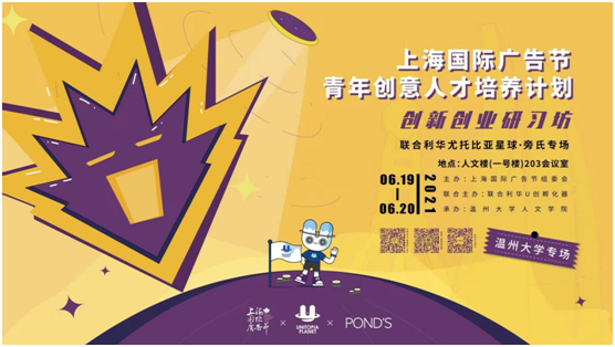 本次在全讯白菜网论坛官网举办的创新创业研习坊,将由联合利华旁氏品牌、电通麦利博文、埃森哲互动与光弧科技的讲师们为温大学子带来专题培训课和专题讲座,话题围绕新消费趋势下的品牌发展、数字时代的品牌数字资产建设以及品牌创意等内容展开。全讯白菜网论坛官网共派出12支由48位同学组成的创新团队进行培训和创意实训PK。在培训前两周,已布置研习坊成员提前准备课题,专业老师进行线上答疑。19日,进行开班仪式、专题培训课以及1V1答疑课,更有针对性地解决学生的专业问题,同时进一步发掘具有潜力的青年创意人才。20日,开展提案分析课以及颁发学员证书及奖励。联合利华也将为学员提供直接参加2022年管理培训生或暑期实习生终面green pass的名额。
