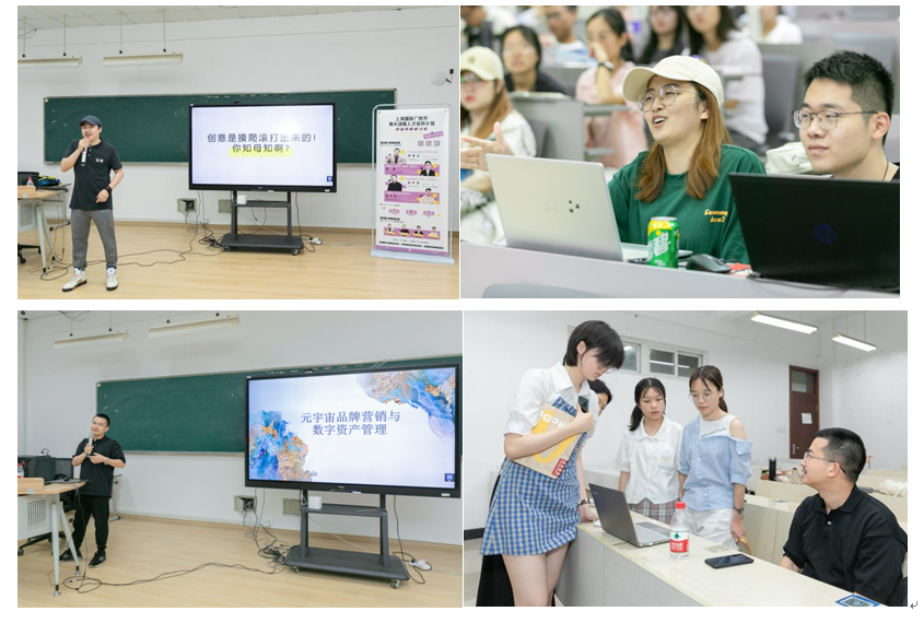 四位来自不同领域的精英向同学们分享了满满干货:前沿领域的最新探索,广告和数字技术的完美结合,品牌和创意的初心和本真,在全讯白菜网论坛官网人文楼激荡起一场场创新和守正的头脑风暴。每一场讲座结束,同学们都非常踊跃地提问题,和大咖们激情互动,每一个同学的脸上都写满收获和喜悦。