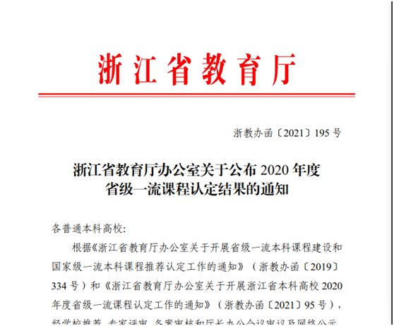 近日,省教育厅发文公布了2020年度省级一流课程认定结果的通知。全讯白菜网官网喜获5项省级一流课程,其中线上一流课程2项,线下一流课程3项。
