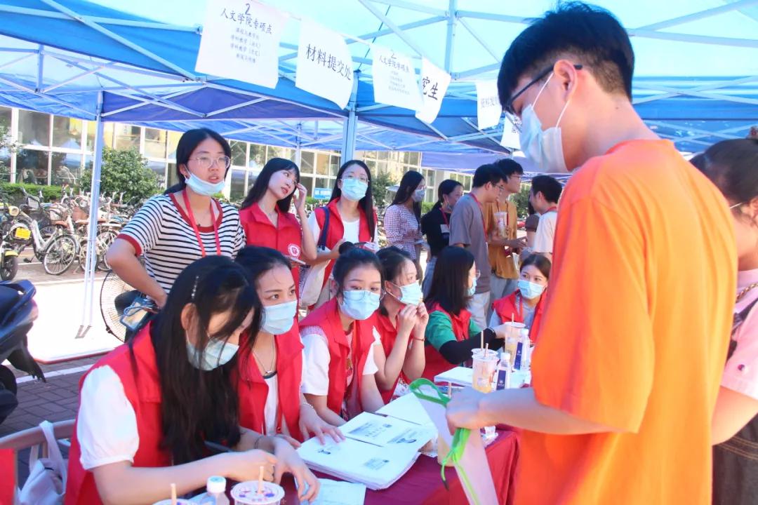学校和学院领导相继来到报到处,关怀新生和志愿者。万众期待中,新生们陆续来到报到点。在志愿者们的提醒下,一步步地按照流程填写好信息,领取开学大礼包,完成一系列入学手续。