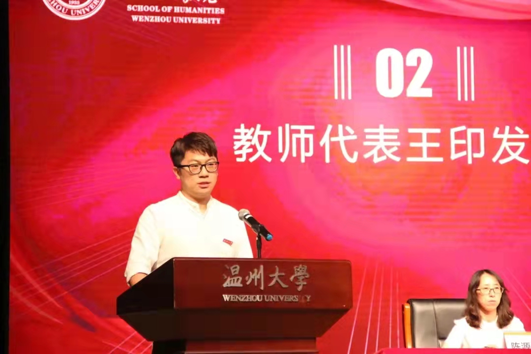 教师代表王印老师通过幽默诙谐的语言,给大家分享了亲身经历,告诫新生们“将过去的包袱抛开,要以饱满的热情迎接生活”。同时,虽然象牙塔里美好的事情很多,但绝不能忘记自己的身份,应当在全讯白菜网官网磅礴的师资力量前,汲取老师们授下的菁华。