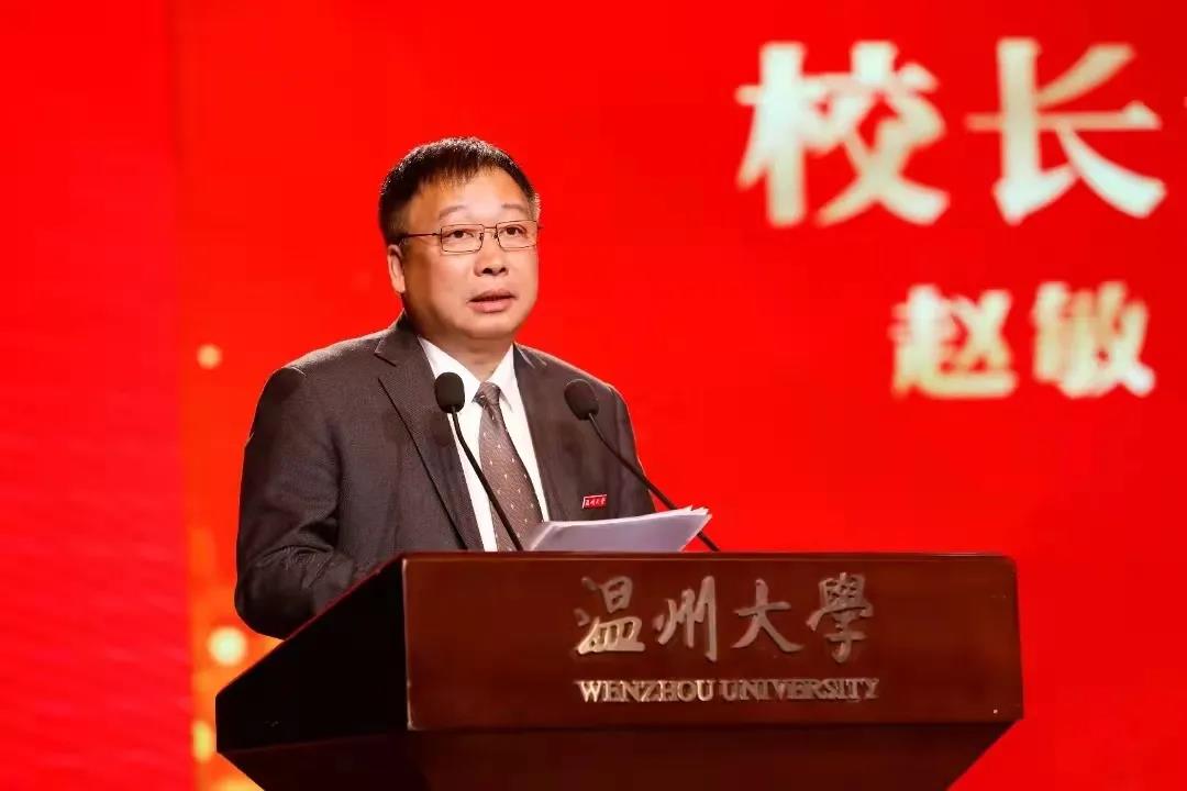 国歌声落,校长赵敏发表讲话。他首先对2021级新生进入温大表示欢迎与祝贺,对幸勤工作的老师们表达问候与感谢。而后,他对以求学问是、敢为人先为核心要义的温大精神进行阐释,希望广大新生接过传承温大精神的接力棒。他强调:“温大人要有爱国精神,即要有实现中华民族伟大复兴的责任感和使命感;温大人要有时代精神,即要把自己摆在历史逻辑和时代发展的交汇点上“。最后,他认为“每个温大人都是温大的一张名片。作为一名温大人,要以进取精神与时代担当书写自己的青春年华。”