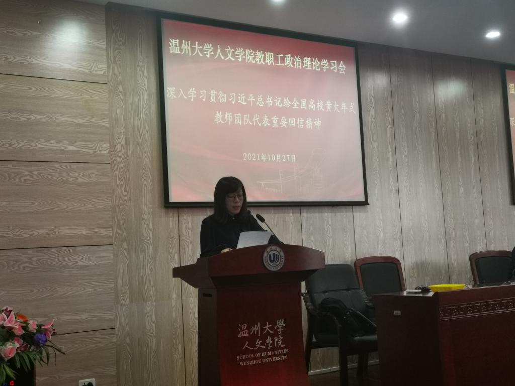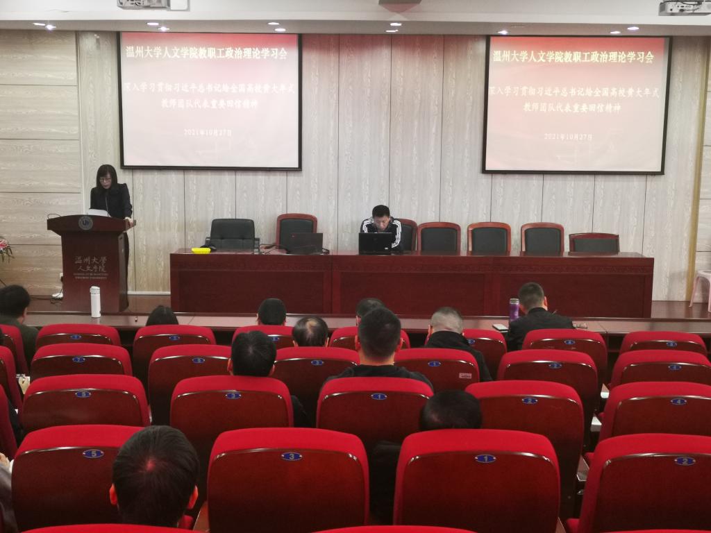 为认真贯彻落实习近平总书记给全国高校黄大年式教师团队代表重要回信精神,深入学习弘扬黄大年同志的爱国情怀和敬业精神,全讯白菜网官网于10月27日下午在203报告厅召开全院教职工政治理论专题学习会。学院全体教职工参加本次会议,会议由学院党委书记吴静主持。