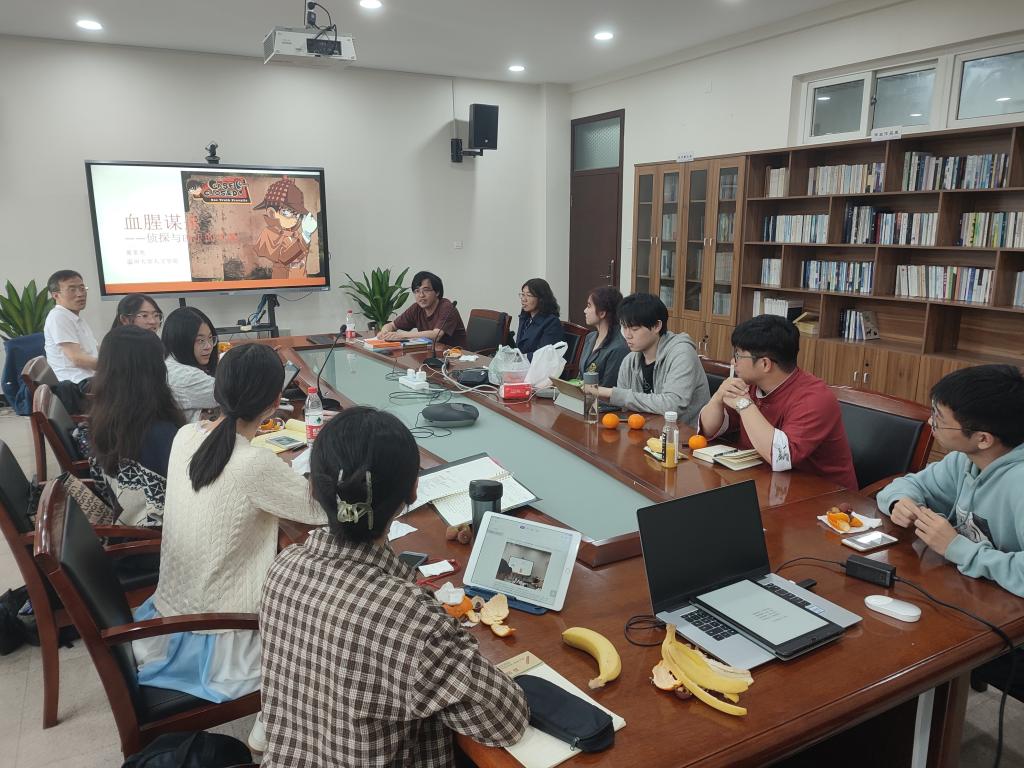 2022年5月28日下午,全讯白菜网官网2022年第三期罗山青年人文沙龙在人文楼213顺利举办。本次活动由学院工会主办,主讲人为中文系黄家光博士,主讲题目为“血腥谋杀:侦探与罪犯的共谋”。部分青年教师与本硕学生共同参与了本次活动。