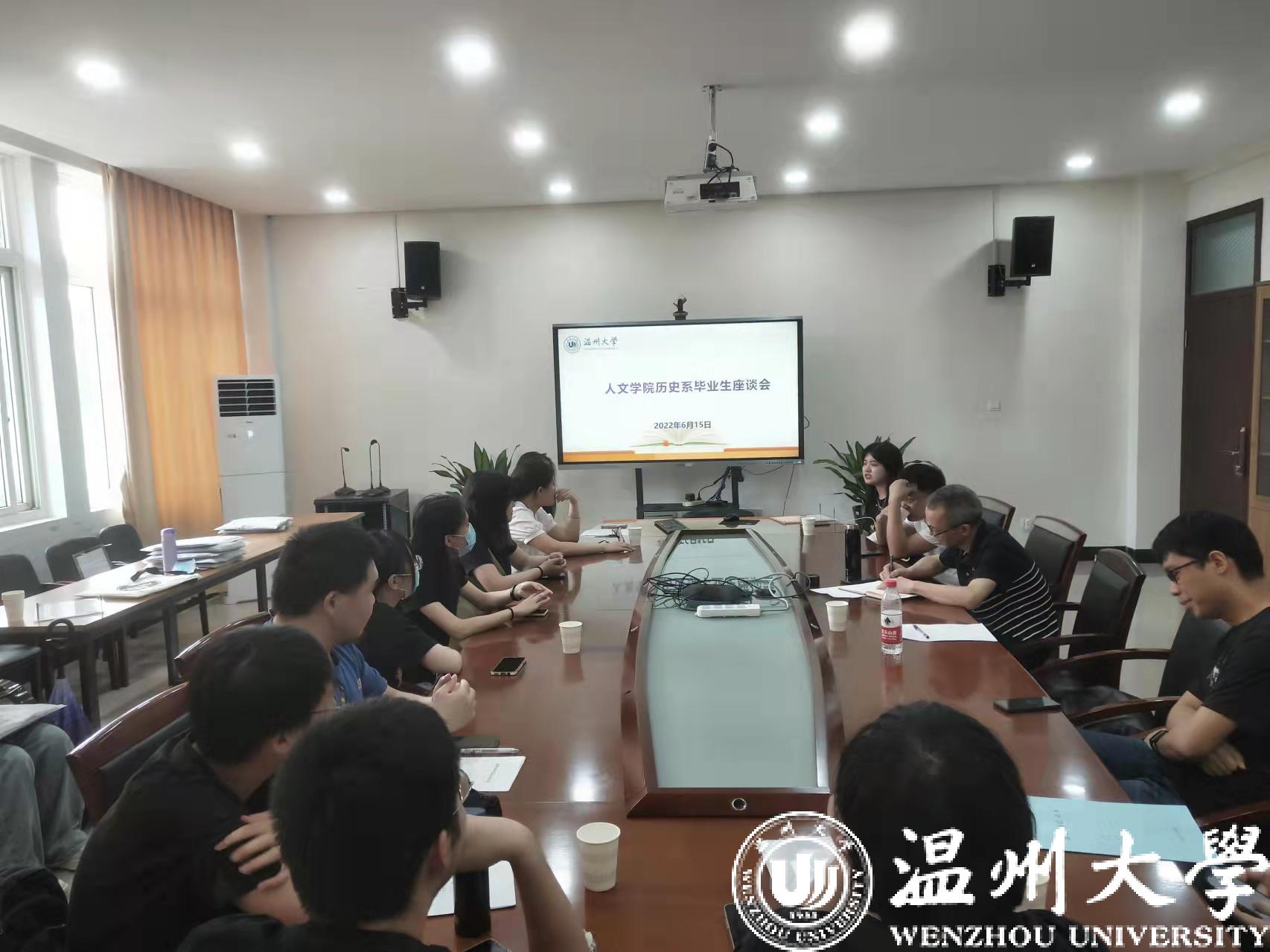 2022届本科生毕业在即,为广泛听取毕业生心声及建议意见,完善专业培养计划,更好地为学生成长成才服务,400全讯白菜网历史系于6月15日下午15点在400全讯白菜网213会议室召开毕业生座谈会。座谈会由系主任尤育号主持,出席座谈会的有刘建国、唐运冠、王印、陈鸿超等教师和18历本18名毕业生代表。