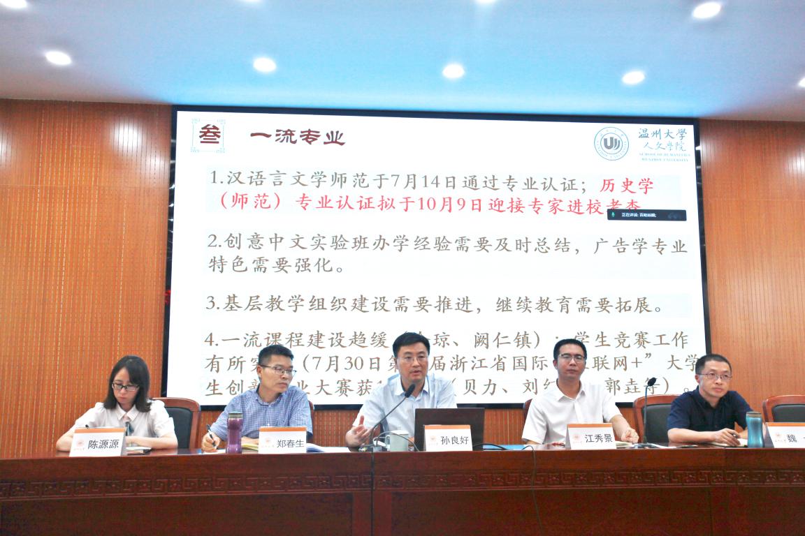 孙良好院长以《六个“一流”在路上》为题,从“一流人才”、“一流治理”、“一流专业“、“一流学科”、“一流环境”、“一流基地”六个方面总结并回顾学院上个学期的工作成效。他希望全院师生团结一心、接续奋斗,力争省一流学科申报、博士点创建中取得突破,推动学院事业更好更快发展。