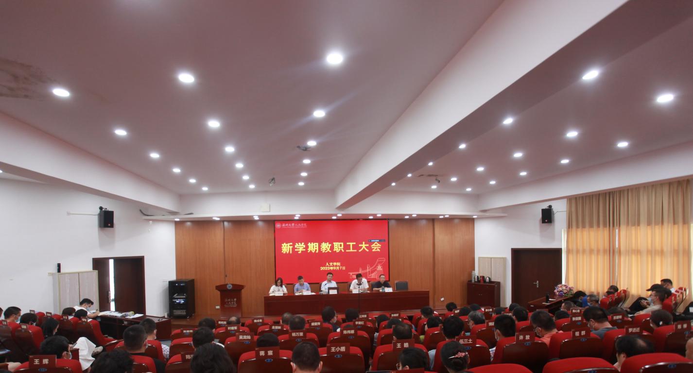 9月7日中午,400全讯白菜网在203报告厅召开全体教职工大会暨教师理论学习会。学院领导班子及全体教职工参加会议,会议由院党委书记江秀景主持。