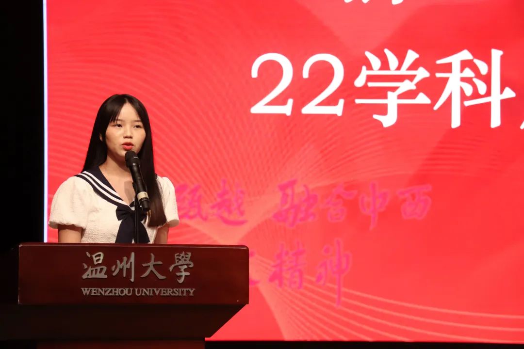 研究生新生代表22级学科历史付丽娟、本科生新生代表22级创意中文邵诺妍先后发言,他们分别分享了自己为实现目标而努力拼搏的求学经历,并告诉同学们凡是过往,皆为序章,只有心中有梦,我们终会到达。人文是静听文学的心跳,是思想与灵魂的激烈碰撞,人文学子应当秉承人文精神,不负韶华,砥砺前行,谱写新的华章!