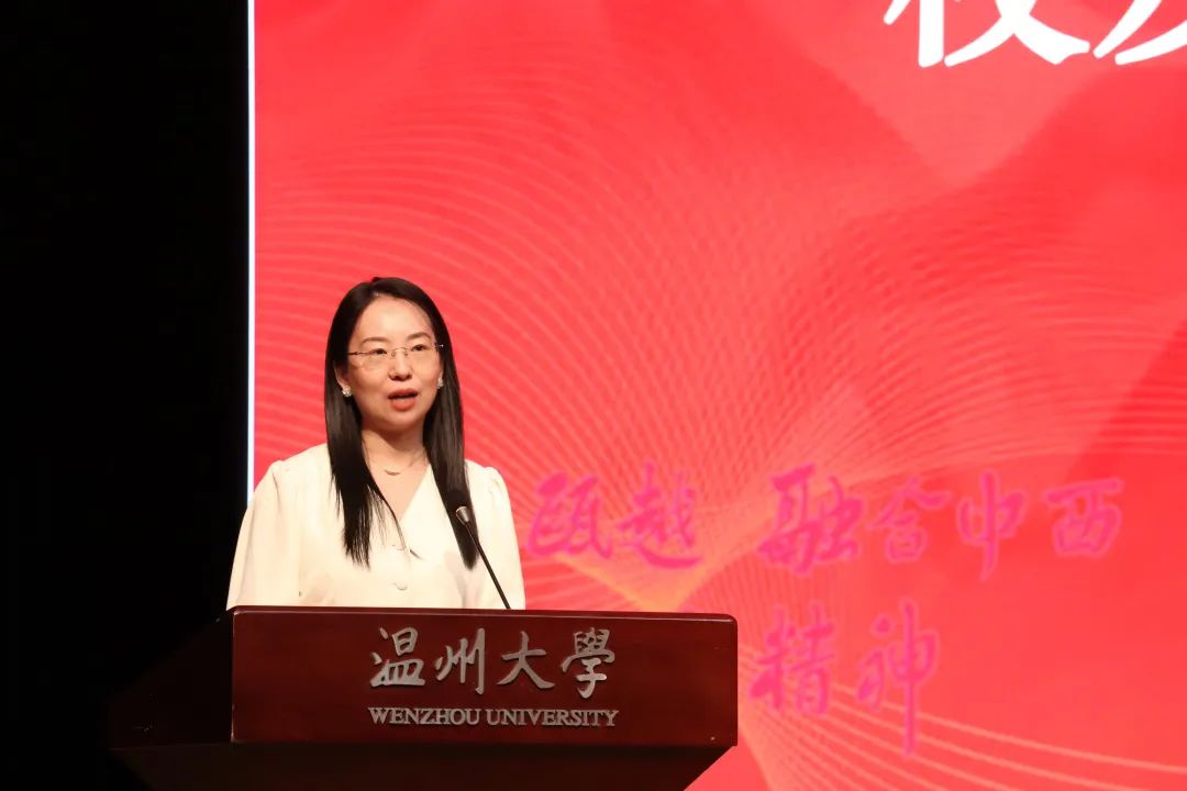 2001届优秀校友代表、浙江省特级教师王少莲在发言中着重强调了感恩、坚持和反思、理解。感恩是最为重要的明灯,旁人的指引和老师的教诲都是我们应该学会感谢的。她用自己曾经参加师范技能比赛的经历告诫大家,只有反思才能进步,只有坚持才能成长,否则就像蜗行牛步、老牛驾车,而理解又是成长中面对人事时不可缺少的一环。最后,王少莲希望同学们能够肩负起时代大任,建功新时代!