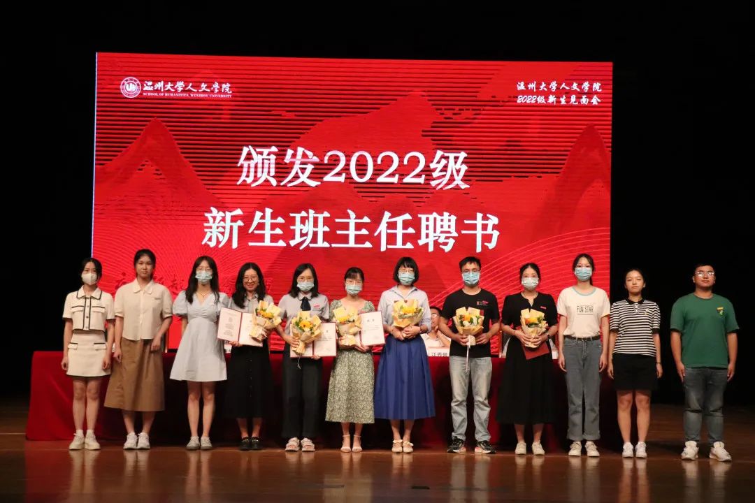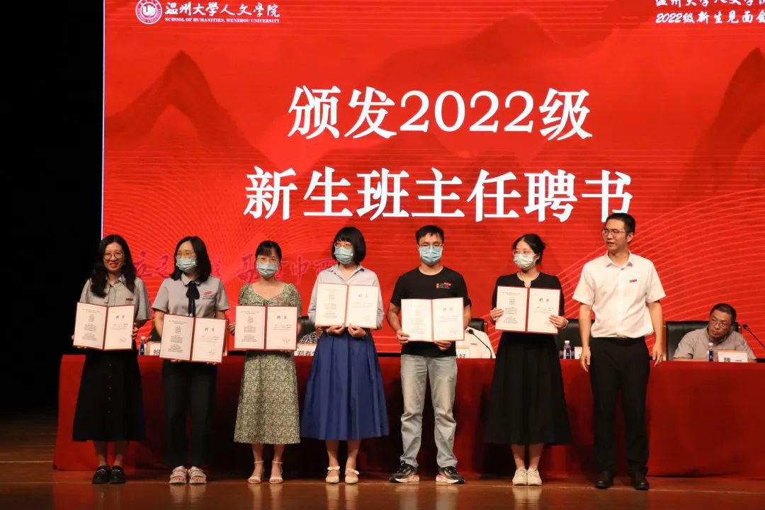 院党委书记江秀景为各新生班级班主任颁发聘书,并合影留念。