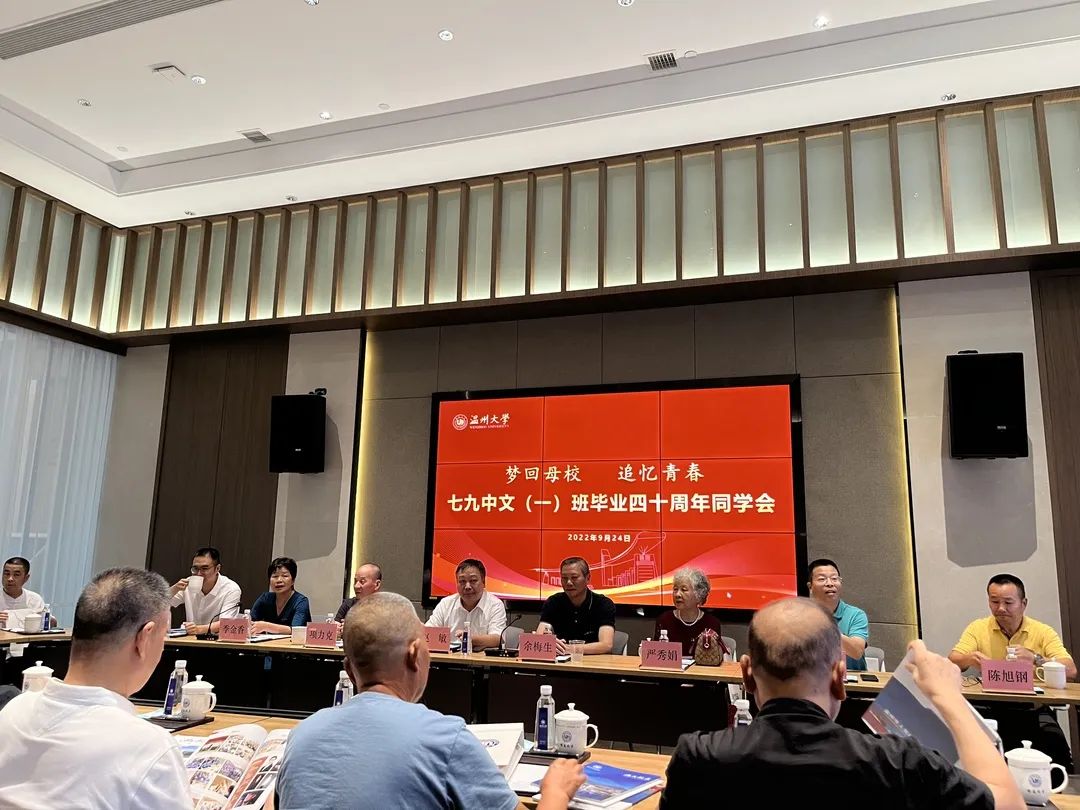 梦回母校,追忆青春。2022年9月24日,七九中文(一)班返校举行毕业四十周年同学会。全讯白菜网论坛官网校长赵敏出席,温州市政协原主席、党组书记余梅生,浙江省政协办公厅原副主任项力克等30余位校友,校友办主任陈宏毅、400全讯白菜网党委书记江秀景及相关人员,教师严秀娟、季金香参加。