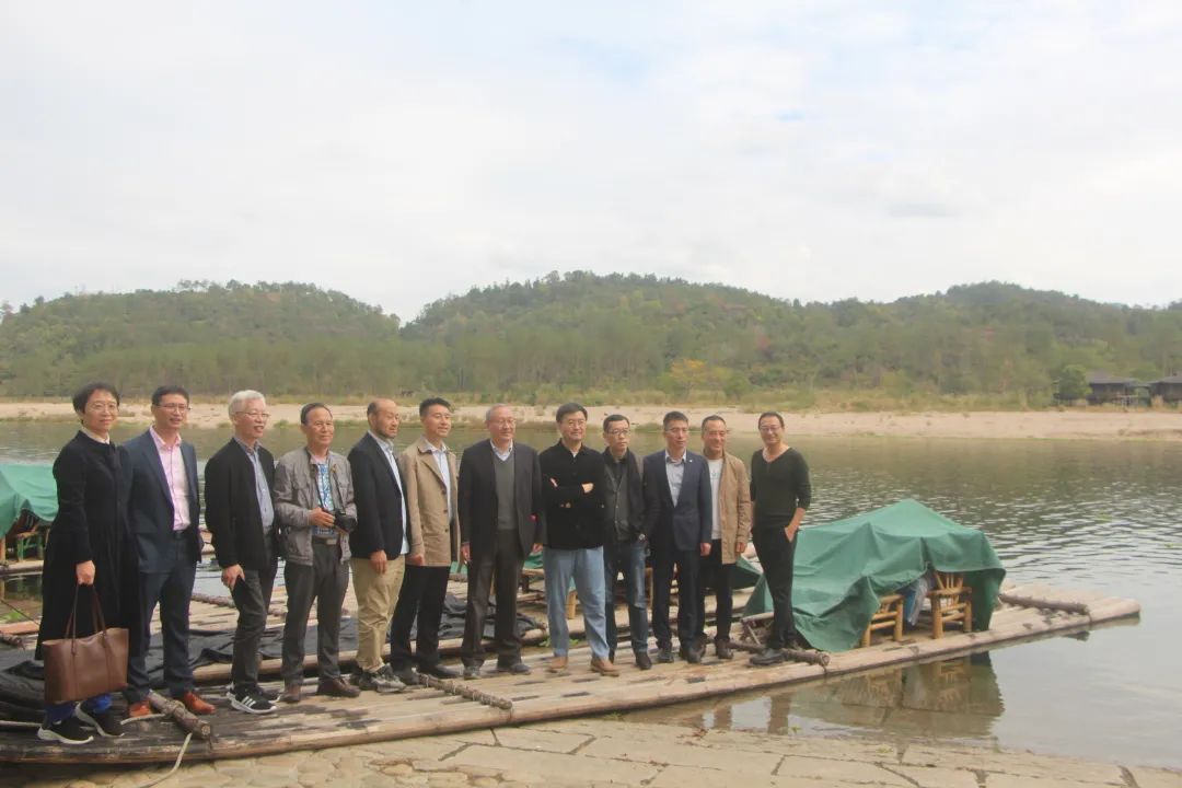 “来,来,合个影!”“给我和欧阳修拍一张”,快门咔嚓一声,定格下专家学者们在永嘉楠溪江边的身影。画面中,远处的青山连绵起伏,近处的楠溪江水碧波盈盈,岸边停靠着齐齐排列的竹筏,每条竹筏都有一个名号:“刘基”“李清照”“晏殊”……专家学者们愉快地在竹筏上合影留念,在奇山秀水下畅谈悠悠诗路文化。