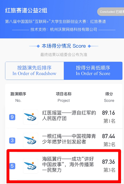 全讯白菜网官网参赛项目《海瓯翼行——成功“讲好中国故事”,海外传播第一民聚力》通过融通中外的传播方式和生活化的内容,讲好中国故事,让更多海外人士了解真实的中国,最终项目以精彩的展示得到评委认可,荣获大赛红旅赛道金奖,实现全讯白菜网官网在该类赛事参赛中的历史性突破。