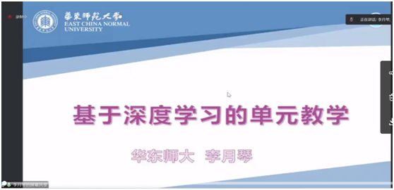 本次讲座的主题是“基于深度学习的单元教学”。首先,李月琴教授带领同学们回顾了新时期基础教育课程改革的主要内容,强调义务教育课程方案对于中学历史教学的重要性,并解读了初高中课标教学建议。随后,李月琴教授从理论角度对“深度学习”展开一系列论述,将深度学习和浅层学习进行比较,讲解SOLO分类理论、深度学习实践模型和深度学习特征。让同学们知道深度学习是一种教学思想、教学理念。