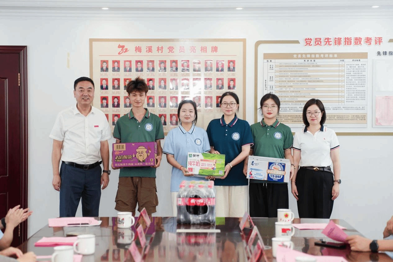 与会领导为实践队的成员们送上慰问物资,鼓励实践队员们知行合一、为推普事业添砖加瓦,并与队员们合影留念,定格了这温馨而难忘的瞬间。